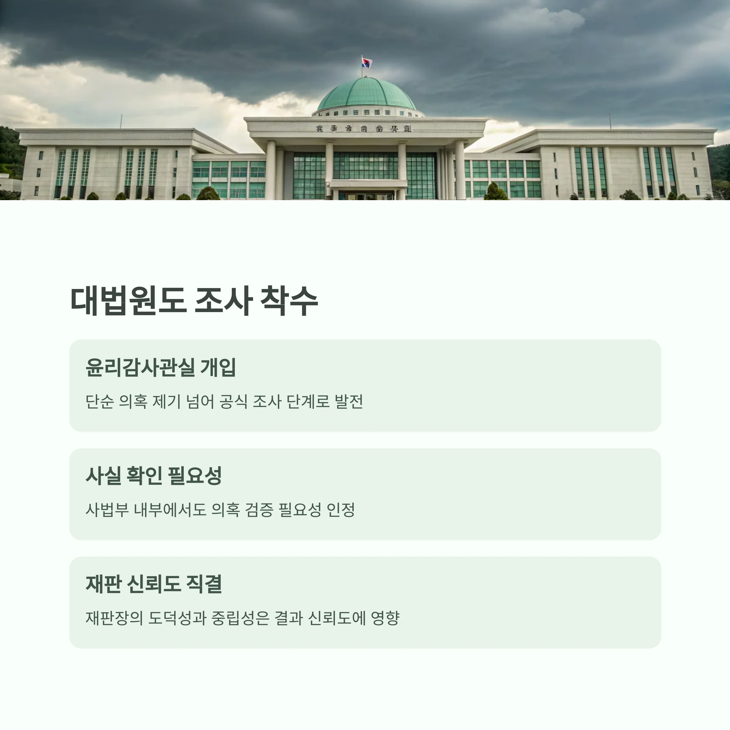 이번 사안은 단순 의혹 제기를 넘어 대법원 윤리감사관실이 조사에 나선 사건으로 발전했습니다.