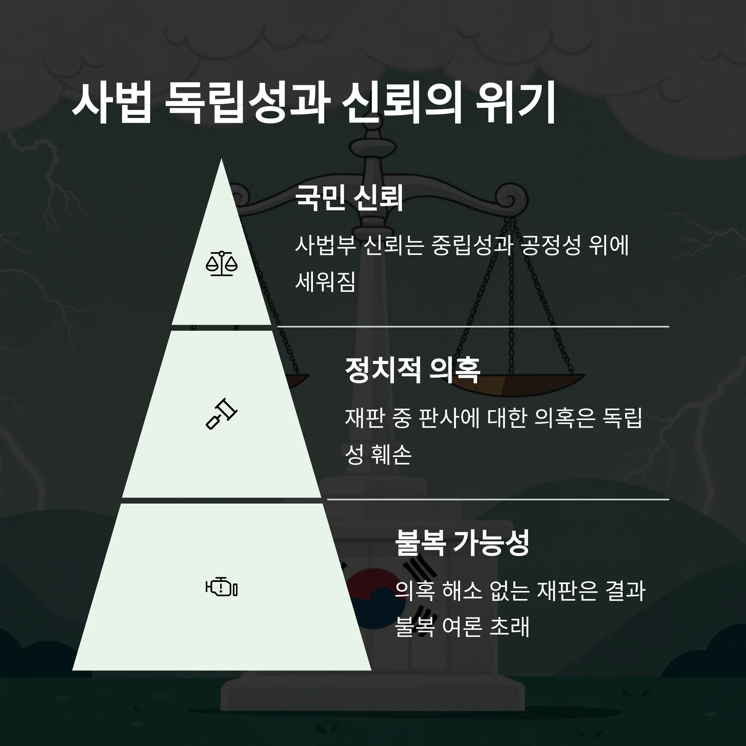 재판 진행 중인 판사에 대한 정치적 의혹 제기가 사법 독립성에 미치는 파장을 보여줍니다.