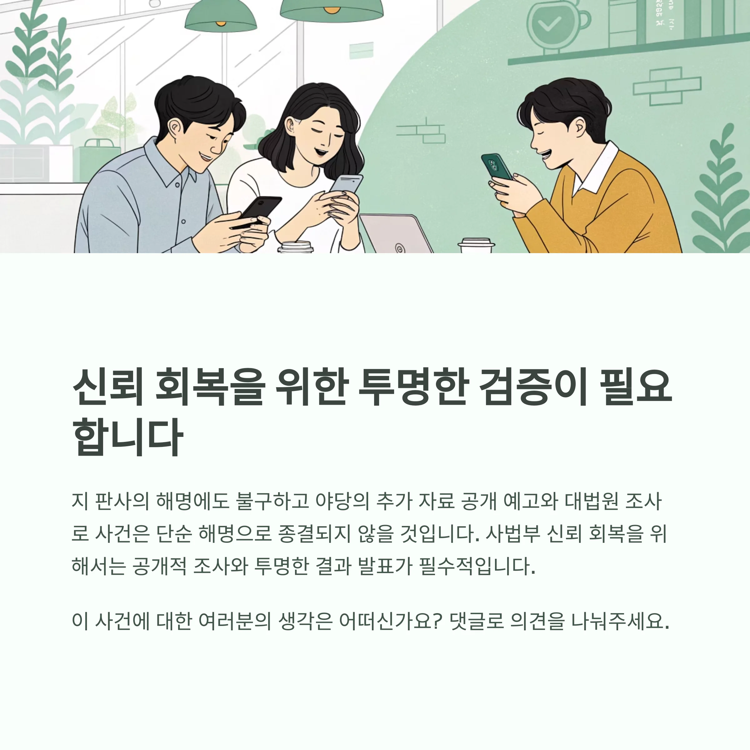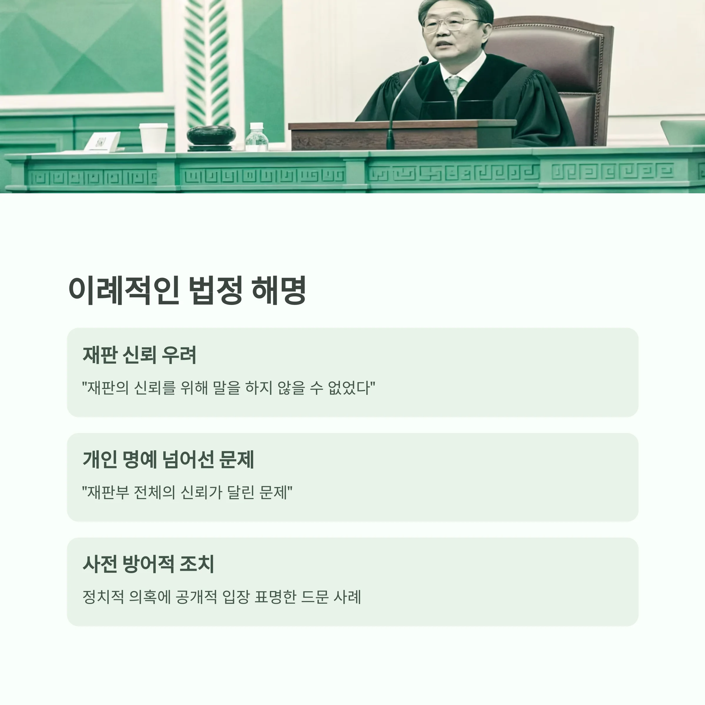 이 같은 해명은 사법부 구성원이 정치적 의혹에 대해 공개적으로 입장을 밝히는 드문 사례로,