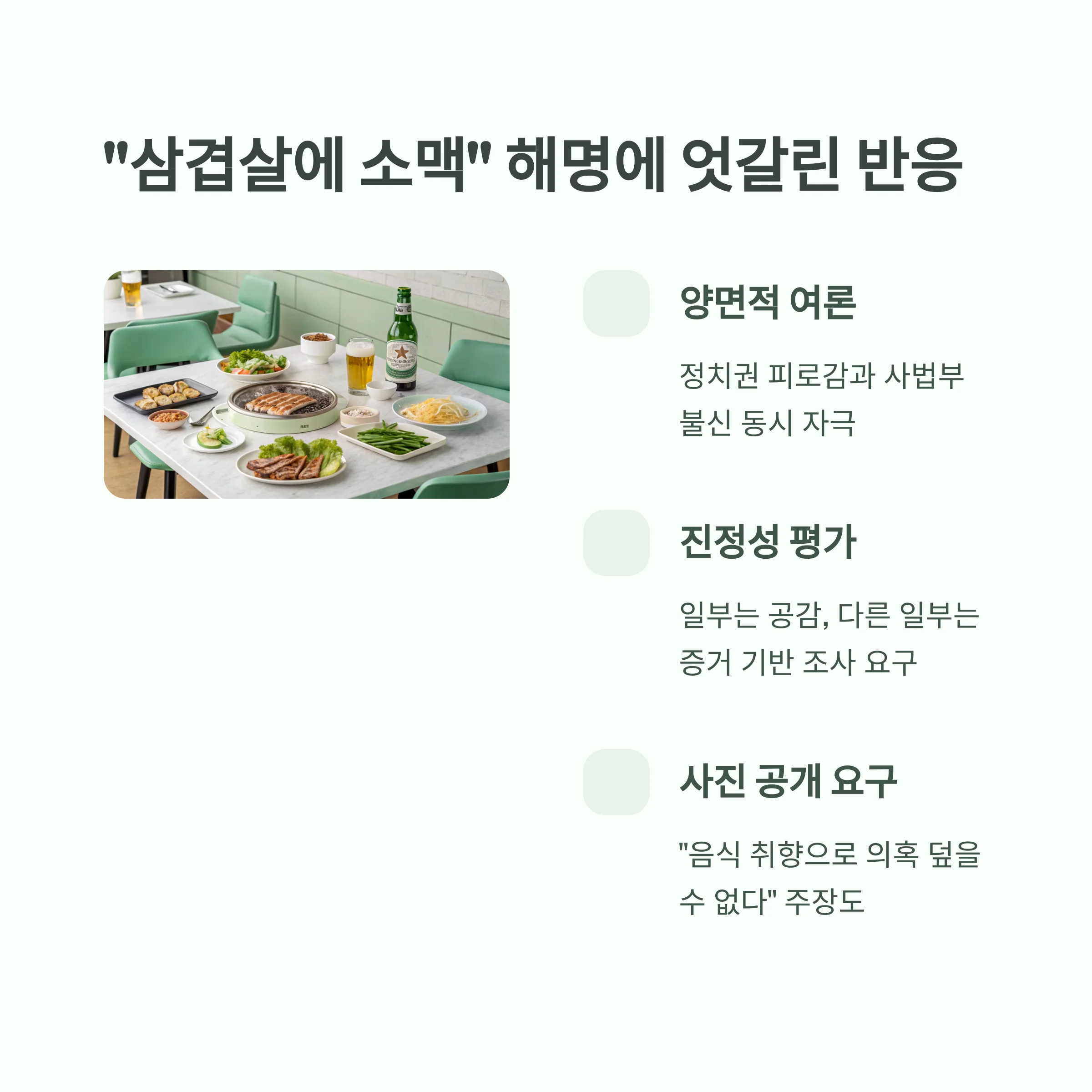 “삼겹살에 소맥” 해명, 여론의 반응은 엇갈려