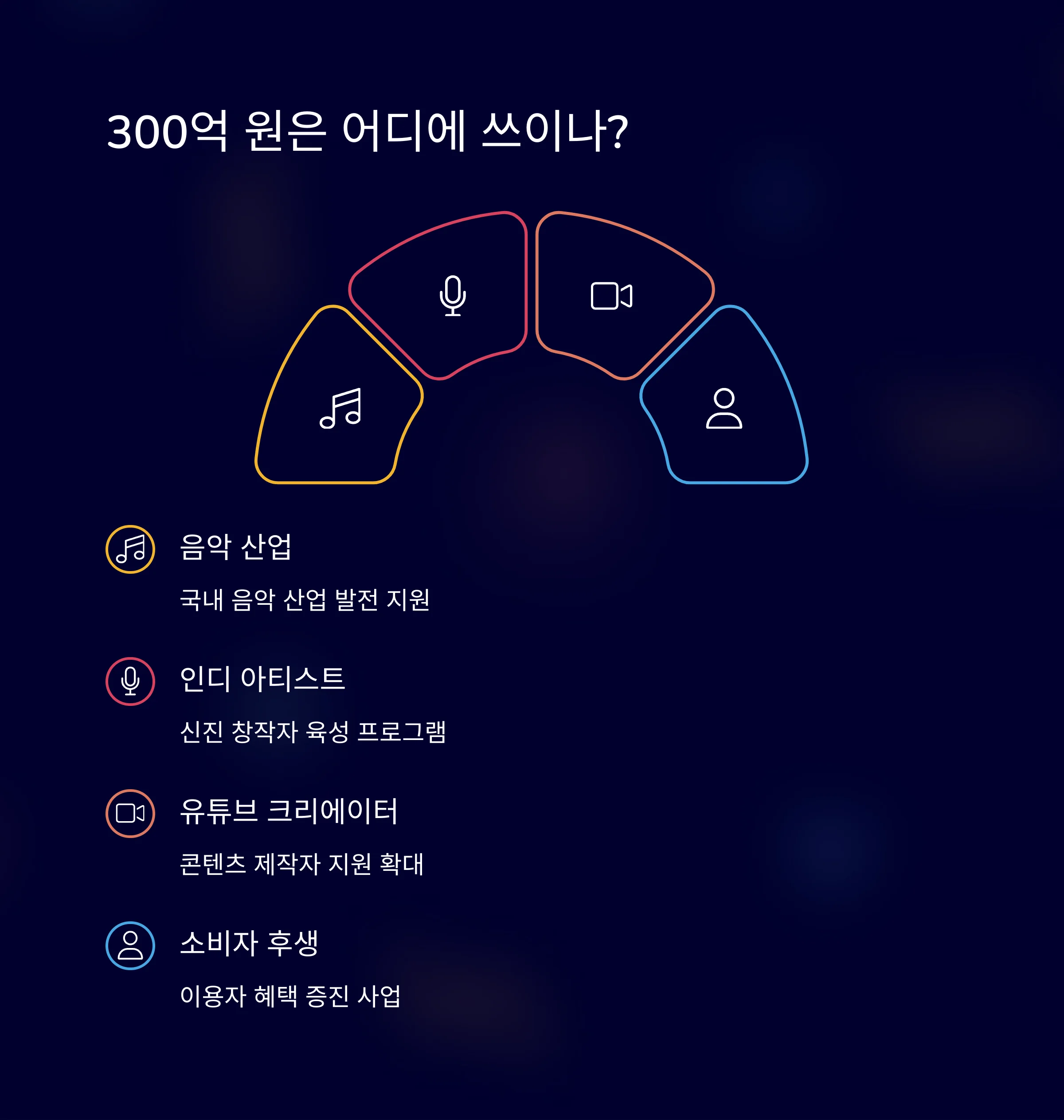 이 기금은 국내 음악 산업, 인디 아티스트, 유튜브 크리에이터 지원,