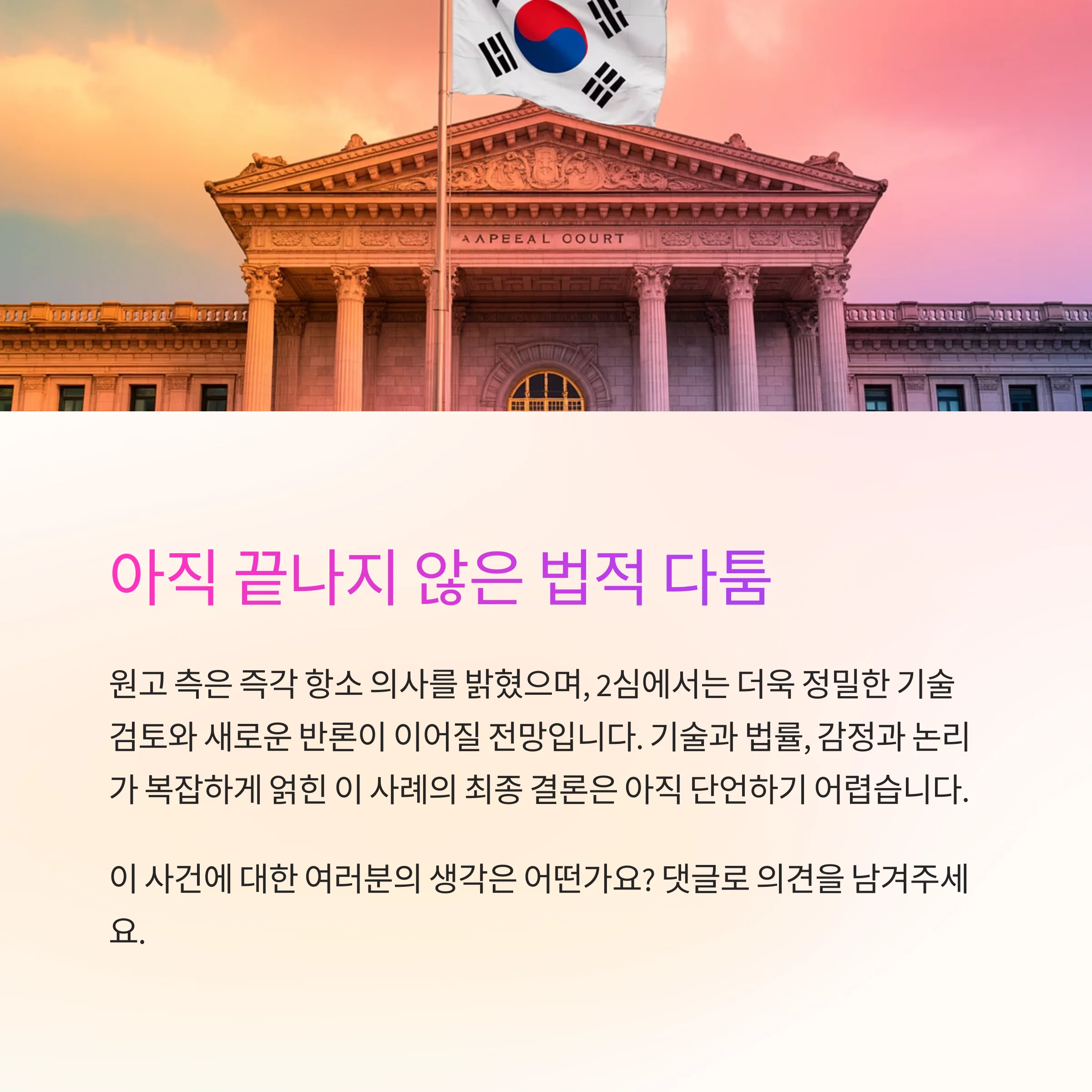 이번 사건은 기술과 법률, 감정과 논리가 복잡하게 얽힌 사례이며,