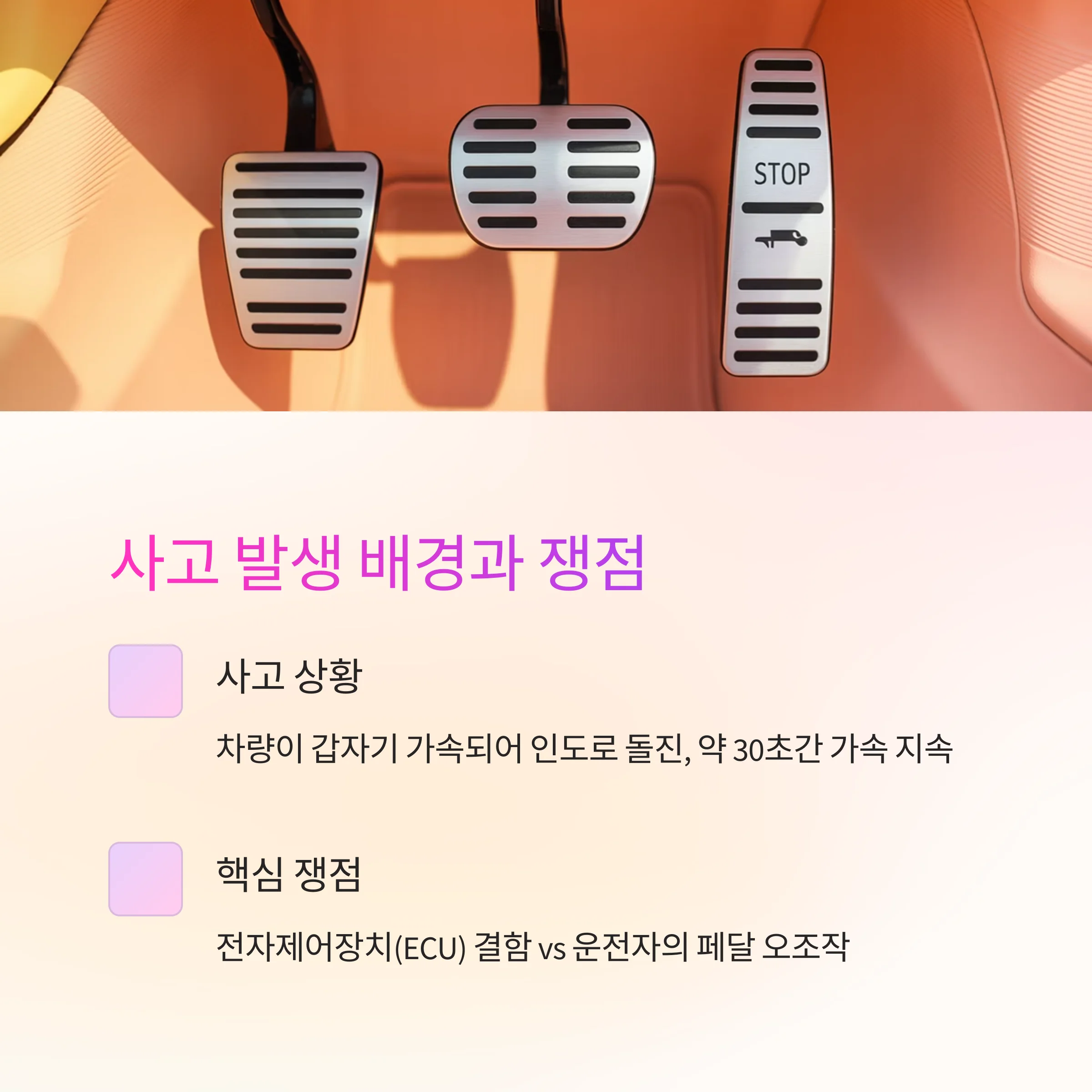 | 주요 쟁점 | ECU 결함 vs 페달 오조작 |