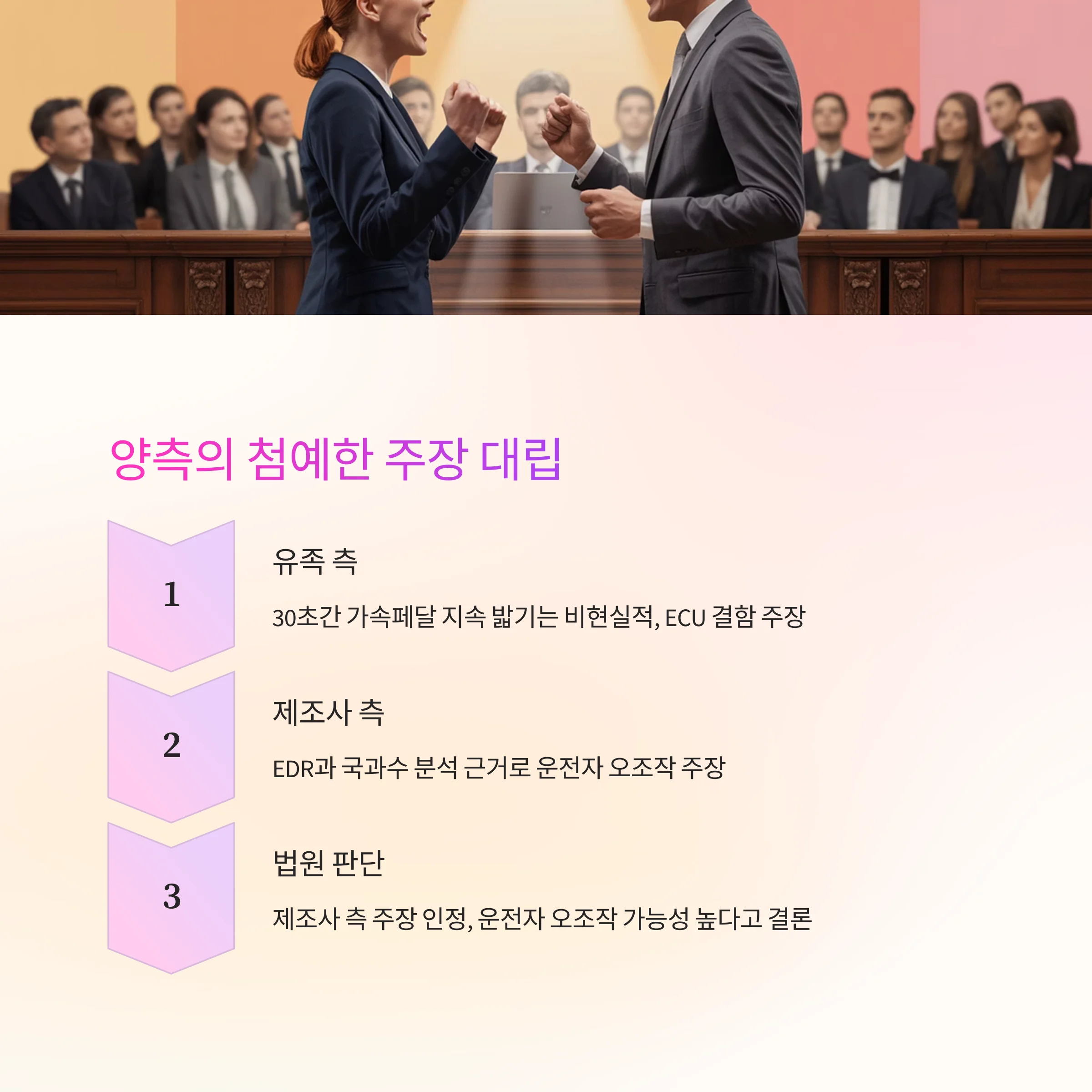 이번 판결은 국내 자동차 사고 관련 소송에서 기술적 판단이 중요한 쟁점으로 작용한 대표 사례로 주목받고 있습니다.