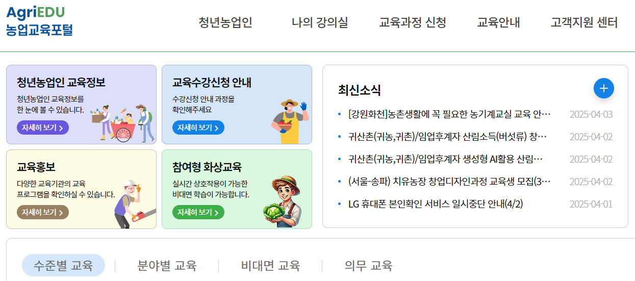이 사이트는 농업 관련 다양한 강좌가 있으며, 농업인이라면 누구나 무료로 이용할 수 있어요.