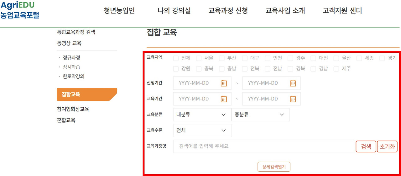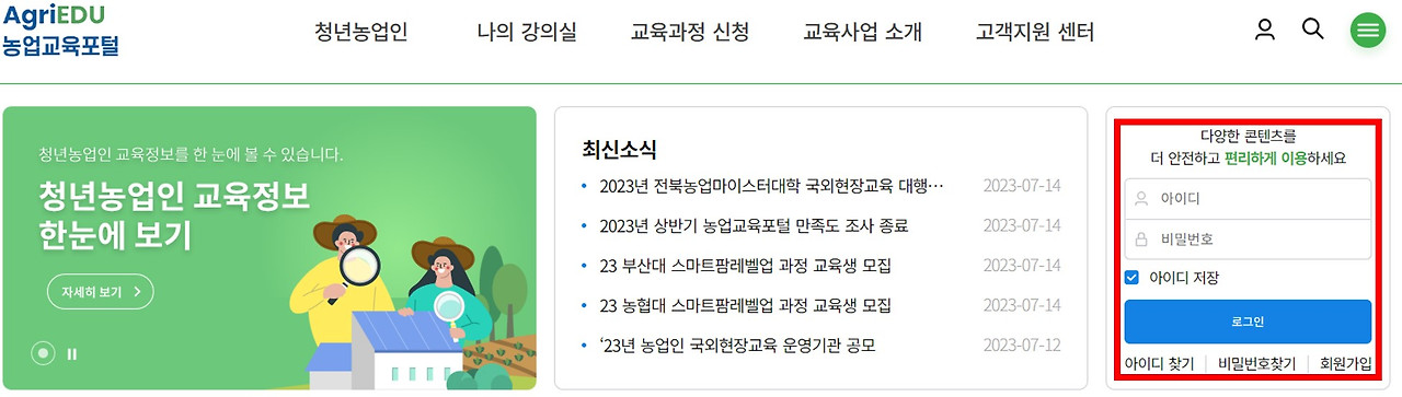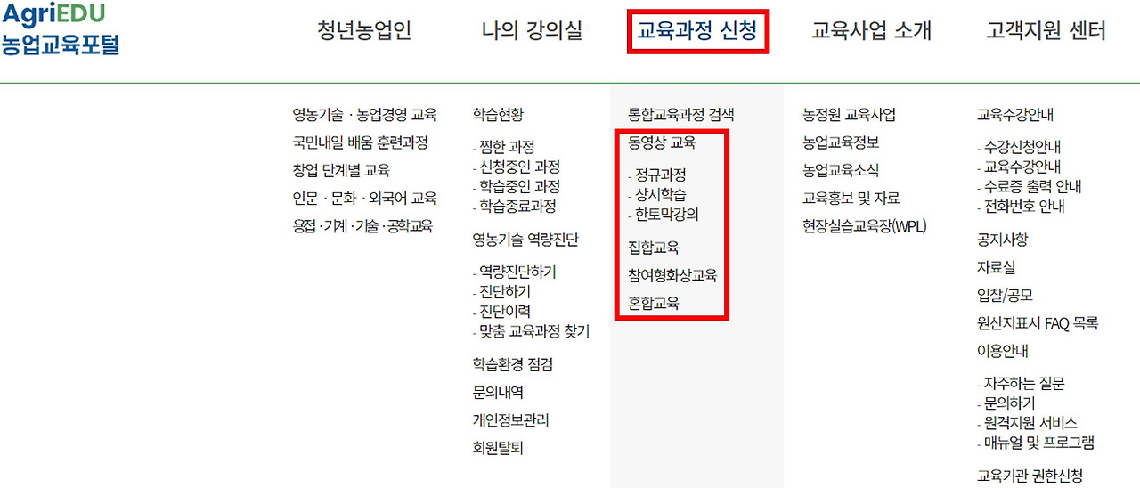 - '농정원 사이버농업교육센터'(agriedu.net) 접속