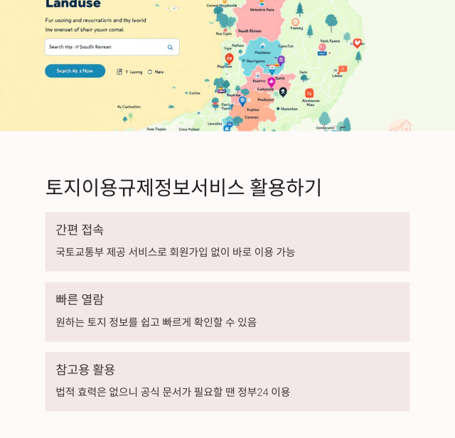 토지이용규제정보서비스는 대략적인 정보 확인에 유용하지만 법적인 증빙 자료로는 사용할 수 없습니다.