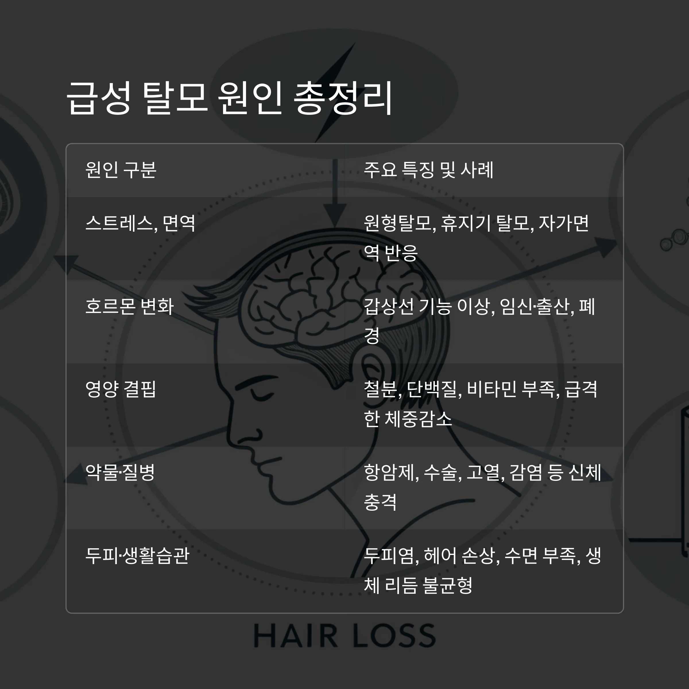 급성 탈모 원인 정리 표