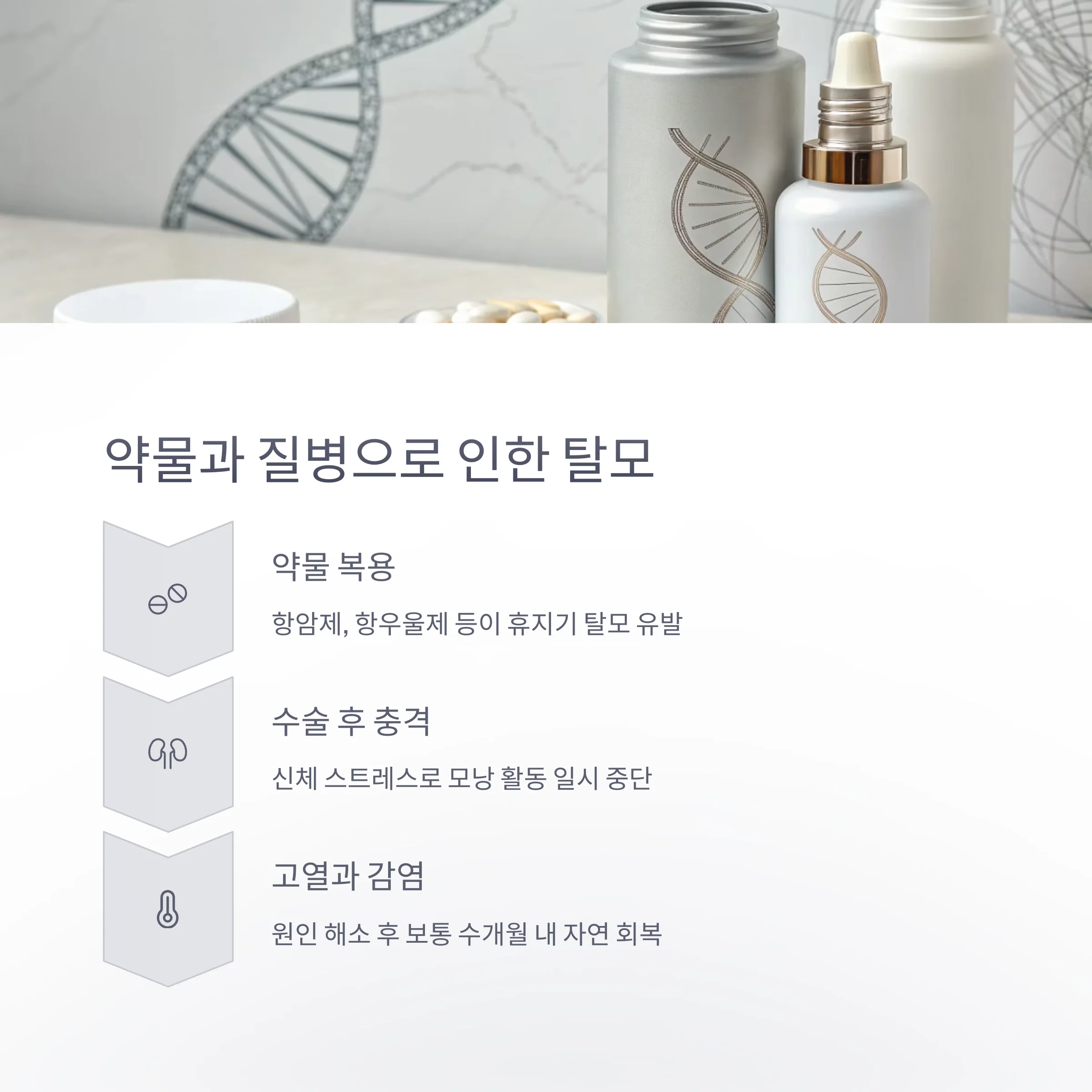 | 약물·수술·질병 | 항암제, 수술, 고열, 감염 등 신체 충격성 요인 |