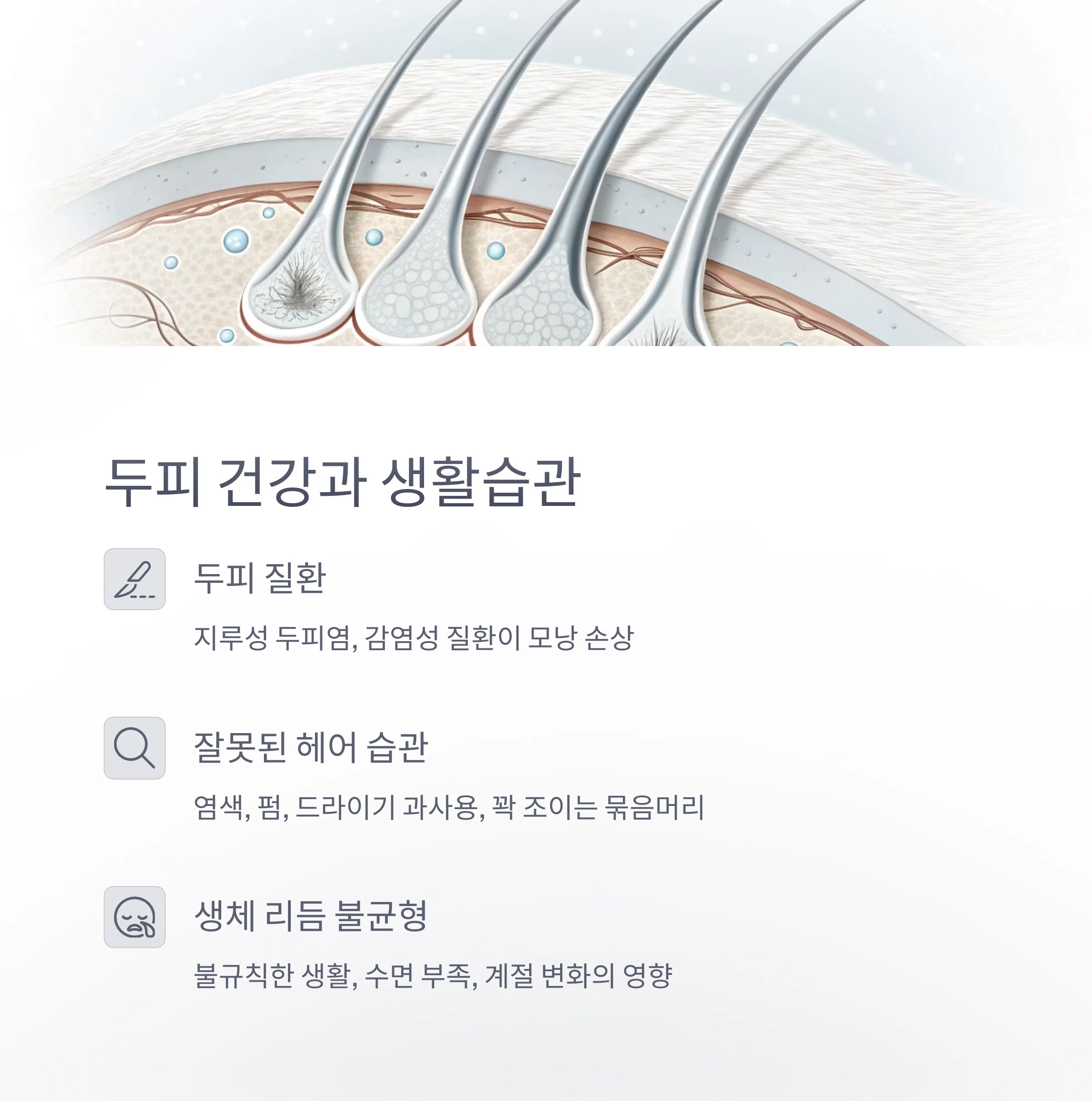 | 두피·생활습관 | 두피염, 헤어 손상, 수면 부족, 생체 리듬 불균형 |