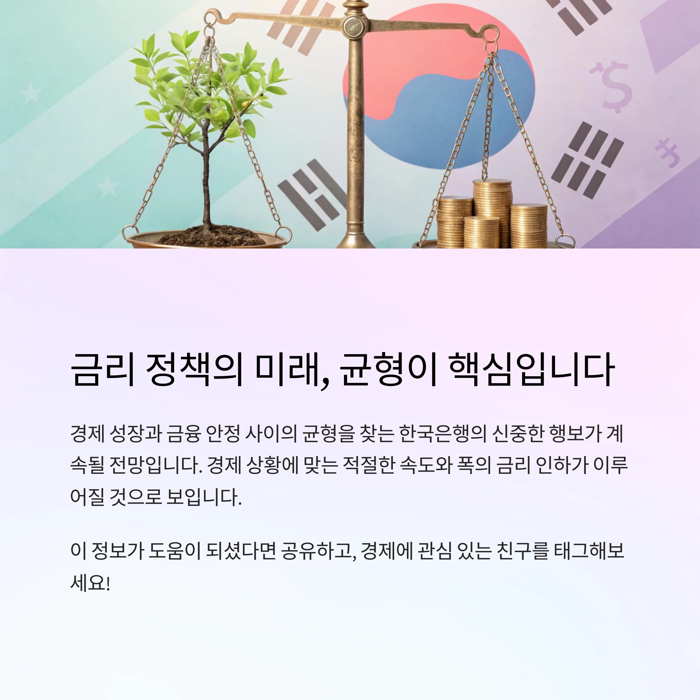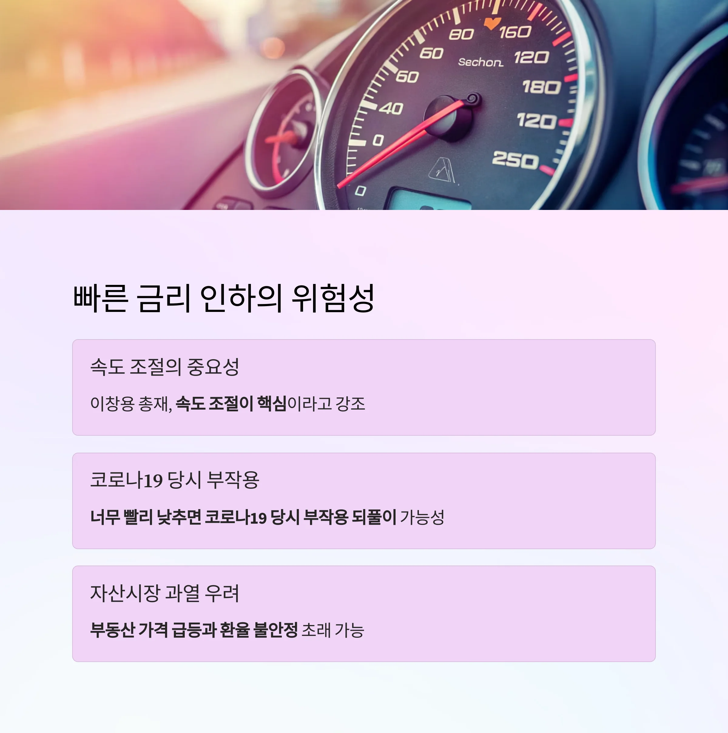 | 금리 인하 속도 | 너무 빠르면 부작용 | 점진적 조정 강조 |