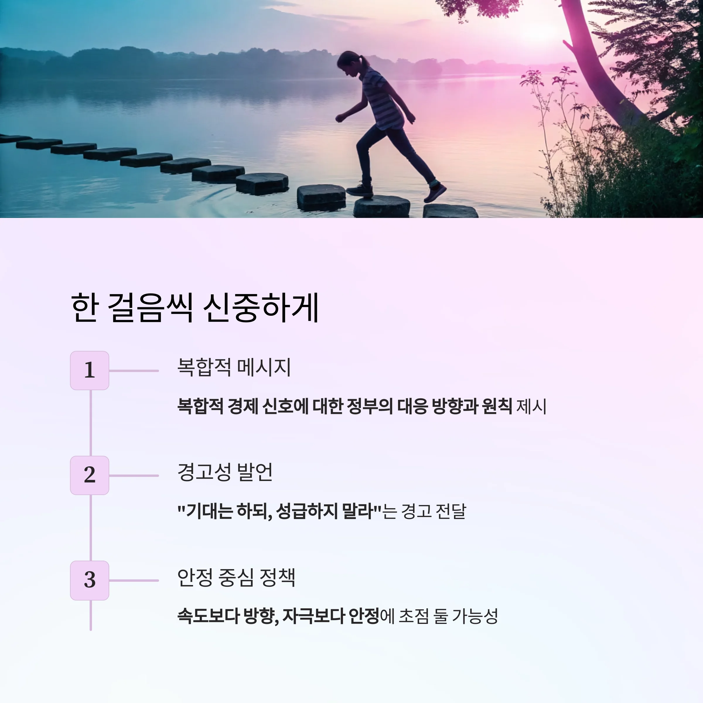 "기대는 하되, 성급하지 말라"는 경고가 시장과 국민에게 전달된 셈입니다.