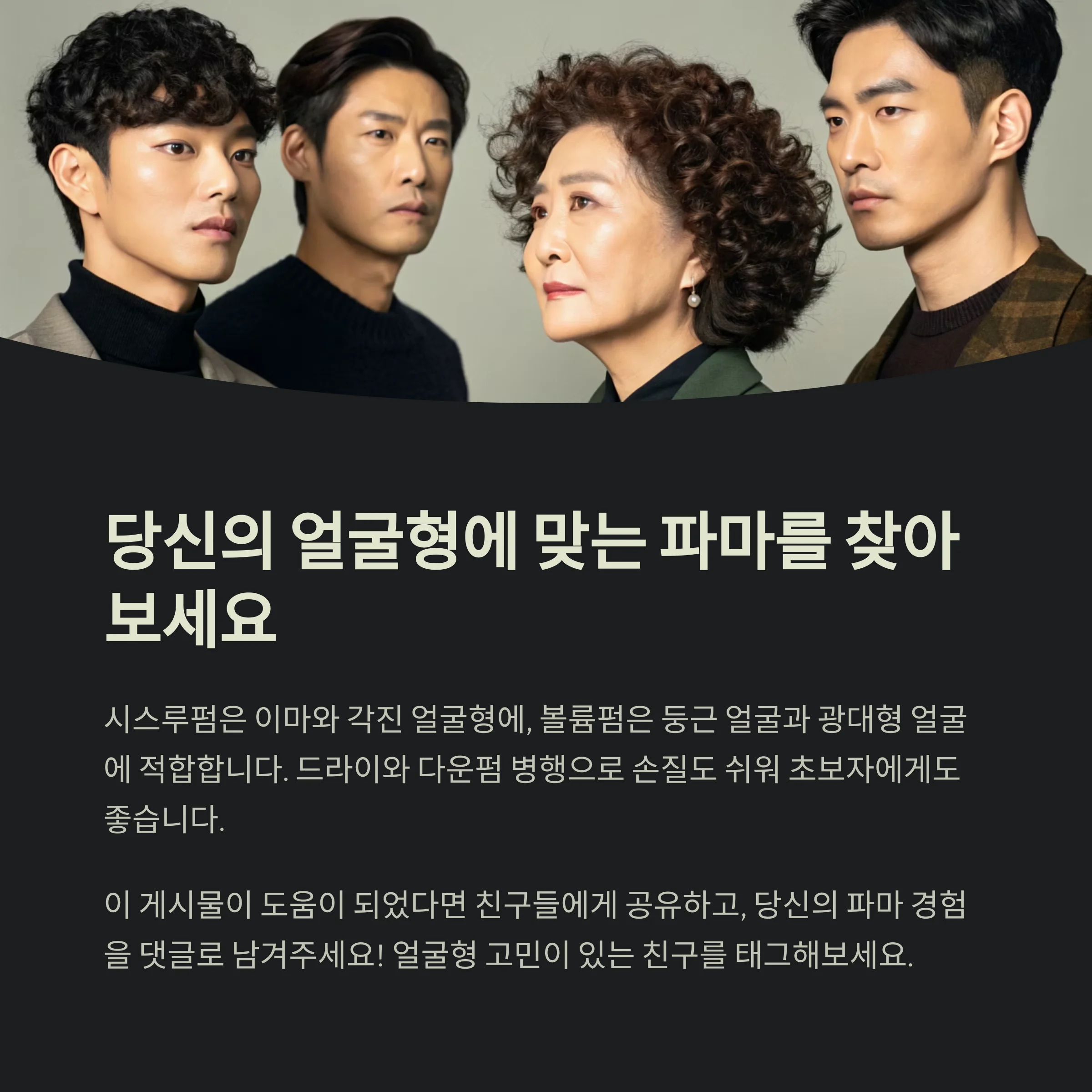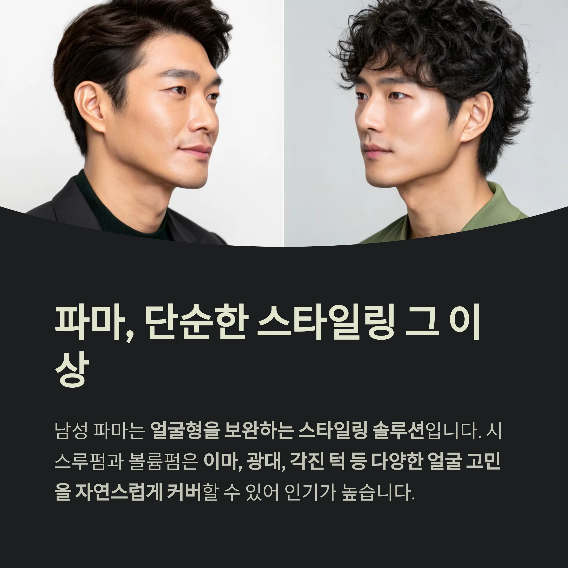 남성 파마는 단순한 헤어스타일 변화가 아닌, 얼굴형을 보완하는 스타일링 솔루션입니다.