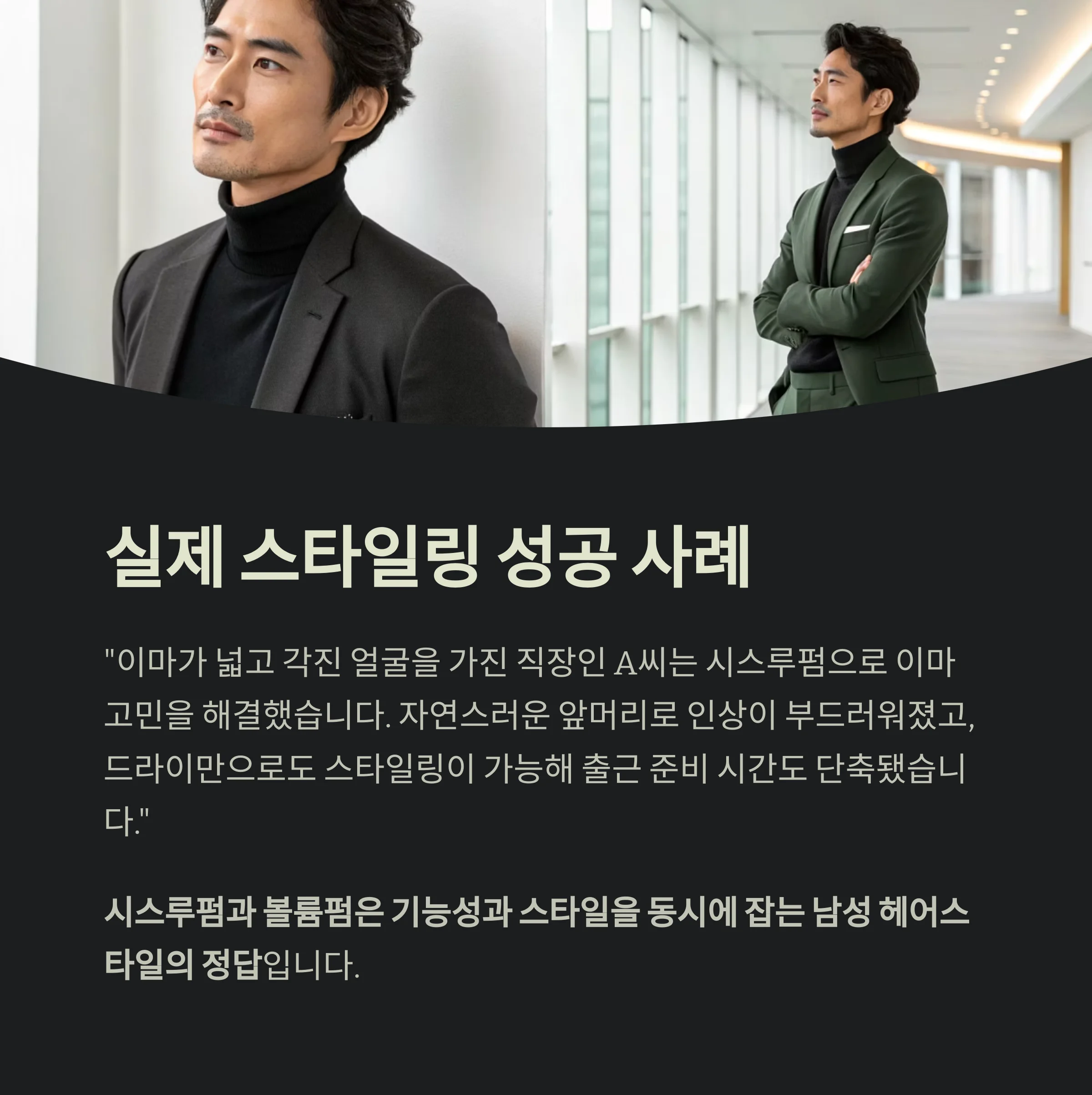 이처럼 시스루펌과 볼륨펌은 기능성과 스타일을 동시에 잡는 남성 헤어스타일의 정답입니다.