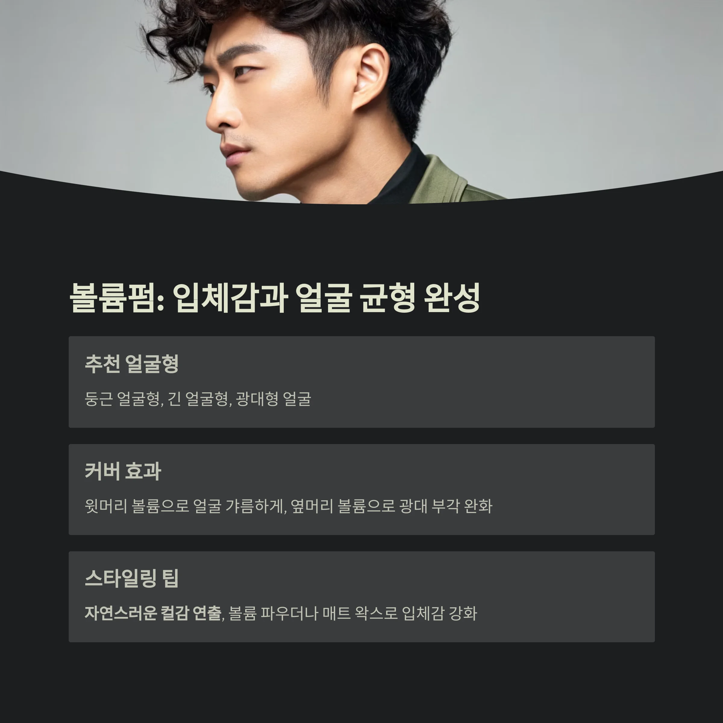 얼굴형 단점을 자연스럽게 보완하고 세련된 인상을 완성하는 남성 파마 스타일링법
