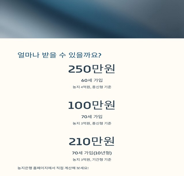 • 농지은행 홈페이지에서 예상 연금액 확인 가능.
