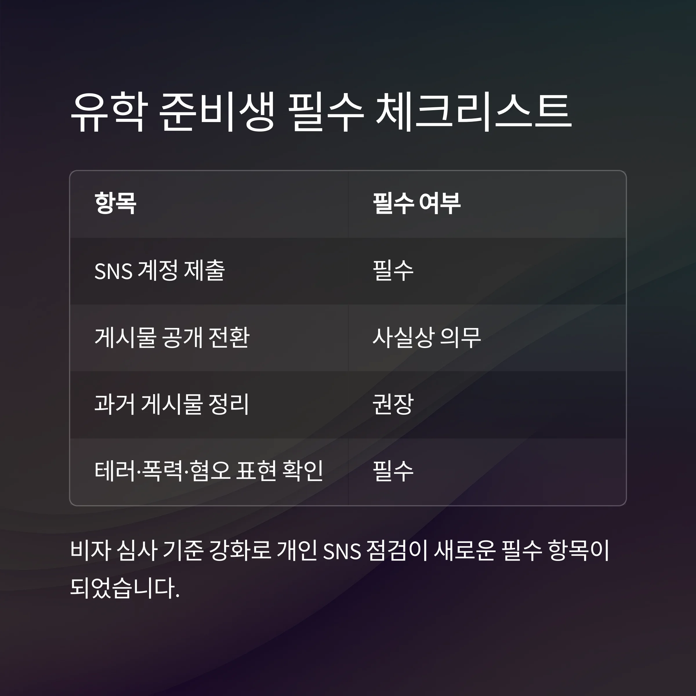 SNS 공개 의무화 계정 제출 및 게시물 열람 허용 필수