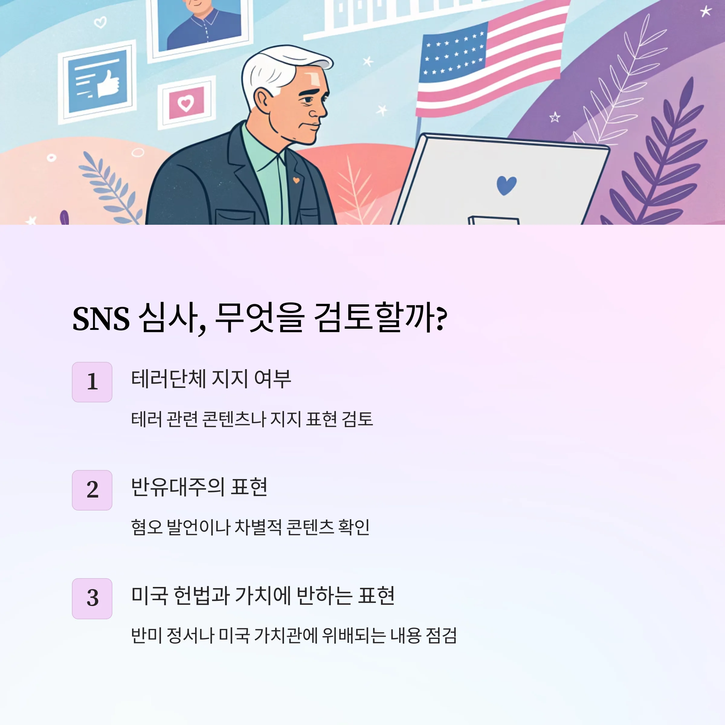 SNS 계정 심사는 미국에 위협이 될 수 있는 요소를