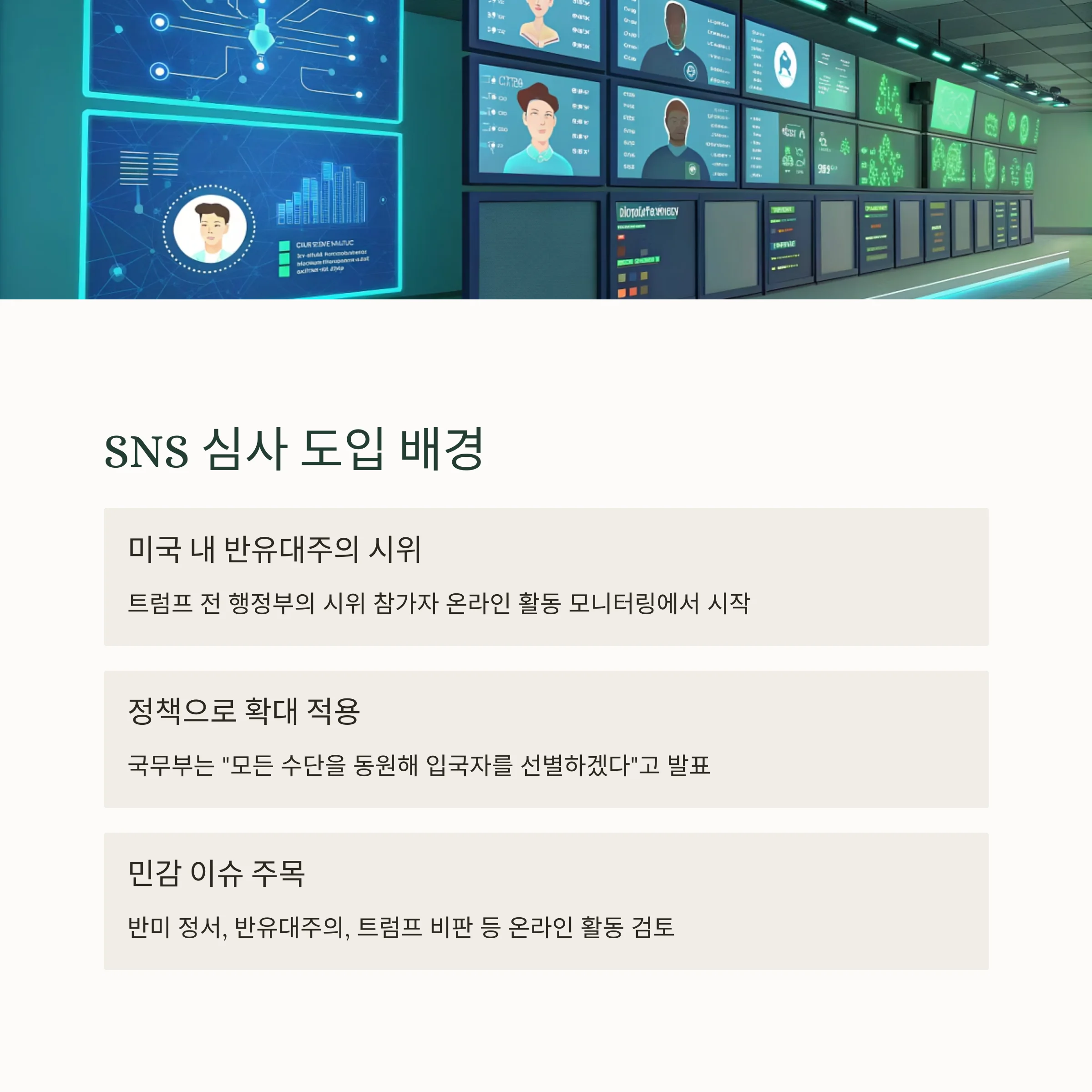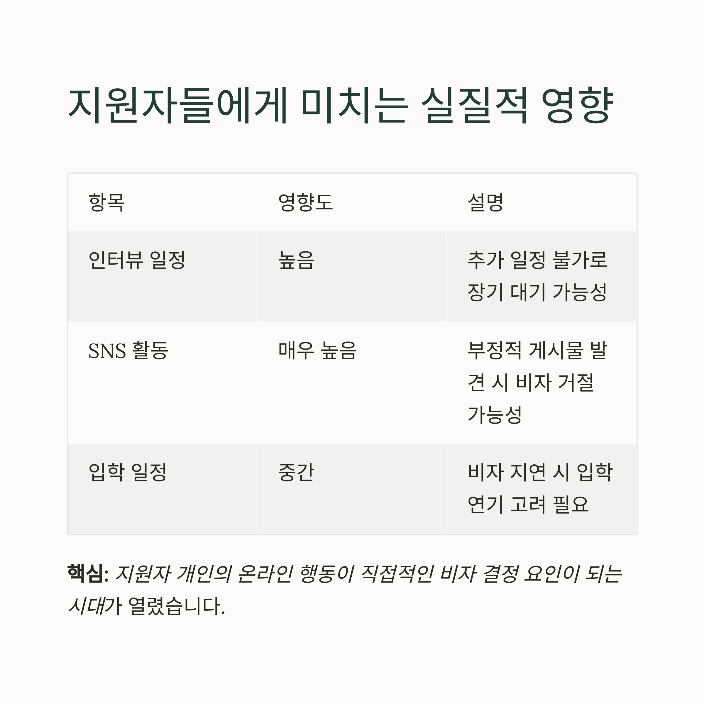 핵심은, 지원자 개인의 온라인 행동이 직접적인 비자 결정 요인이 되는 시대가