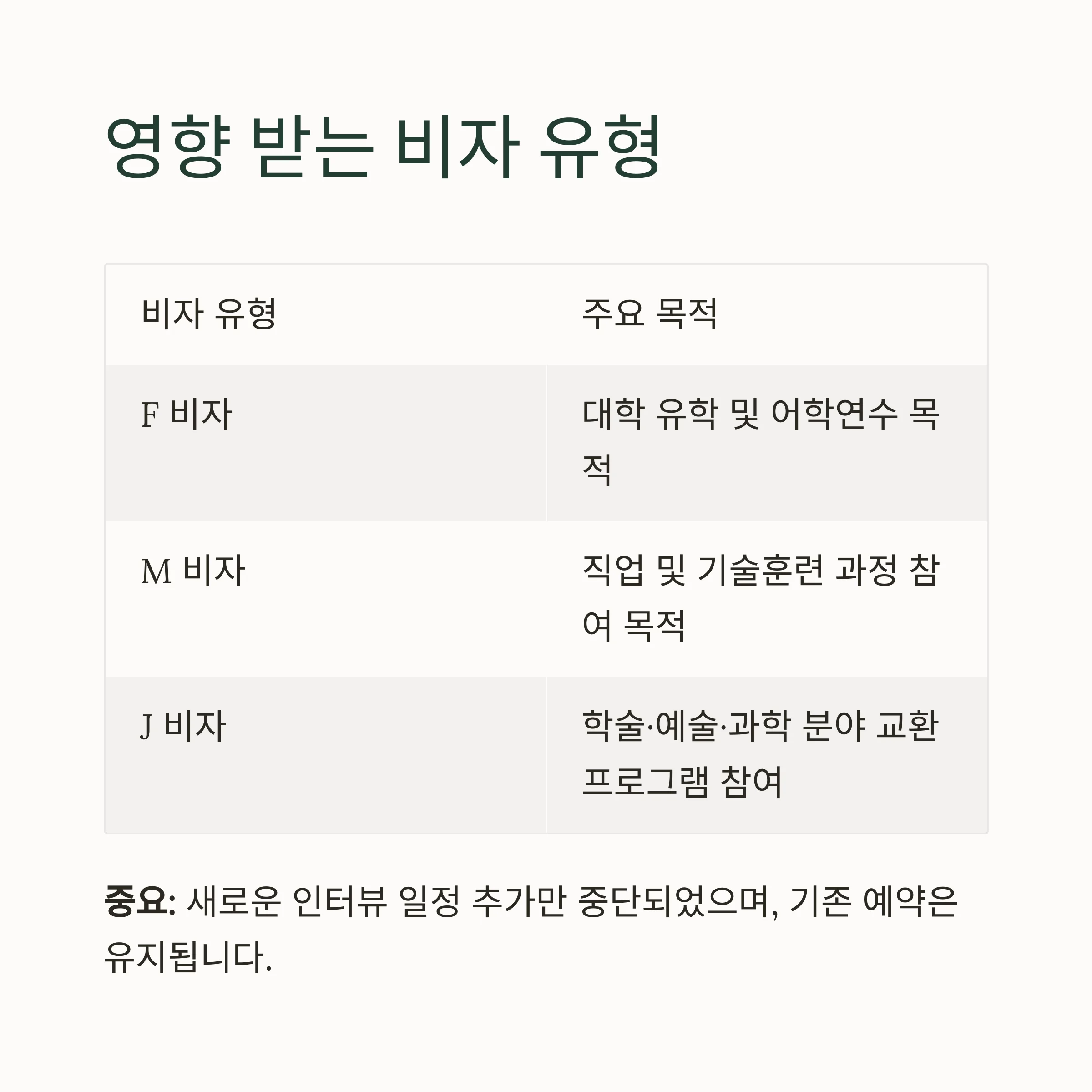 인터뷰 일시 중단, 어떤 비자에 해당될까?