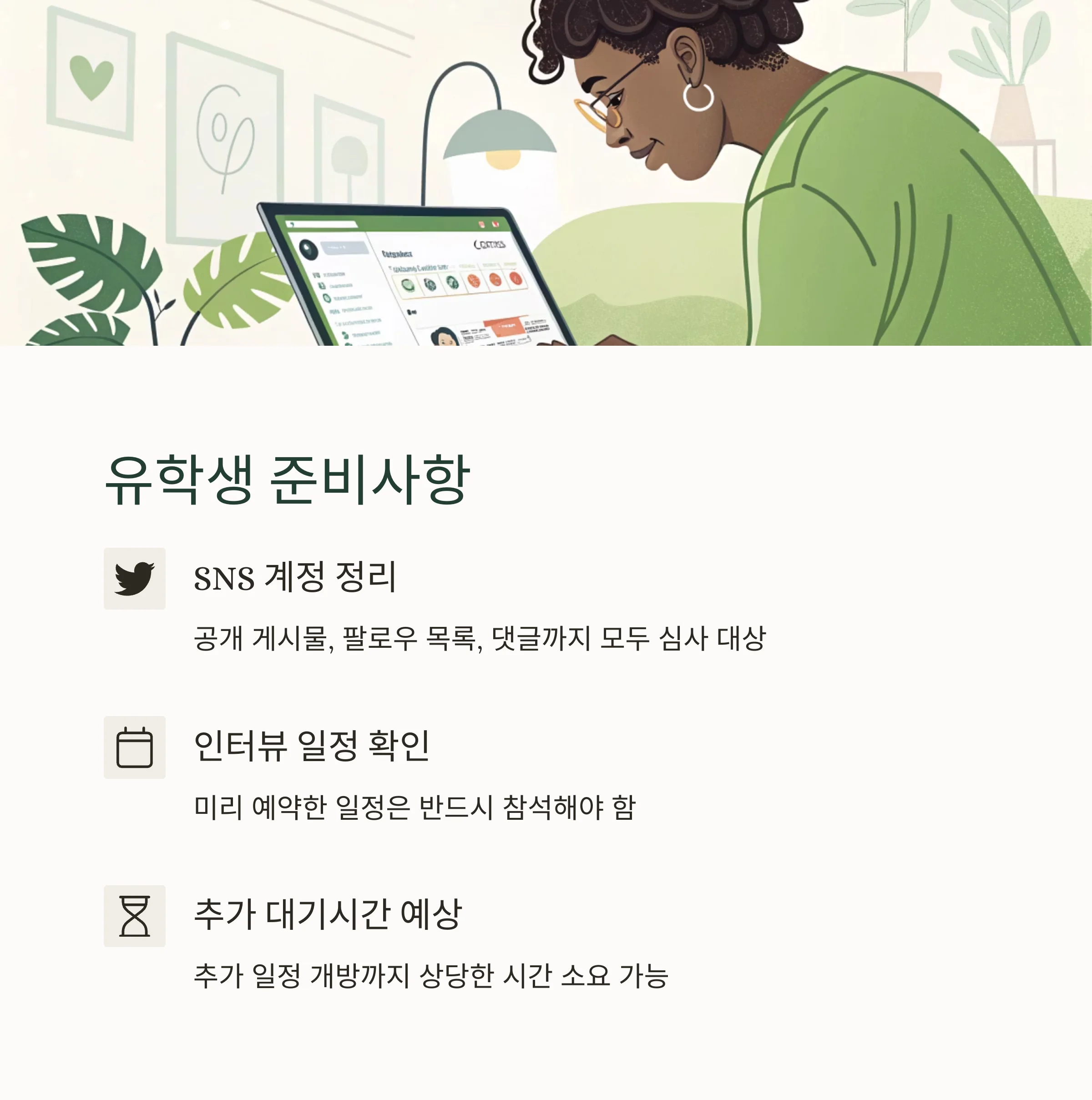 | SNS 활동 정리 필요 | 매우 높음 | 부정적 게시물 발견 시 비자 거절 가능성 |