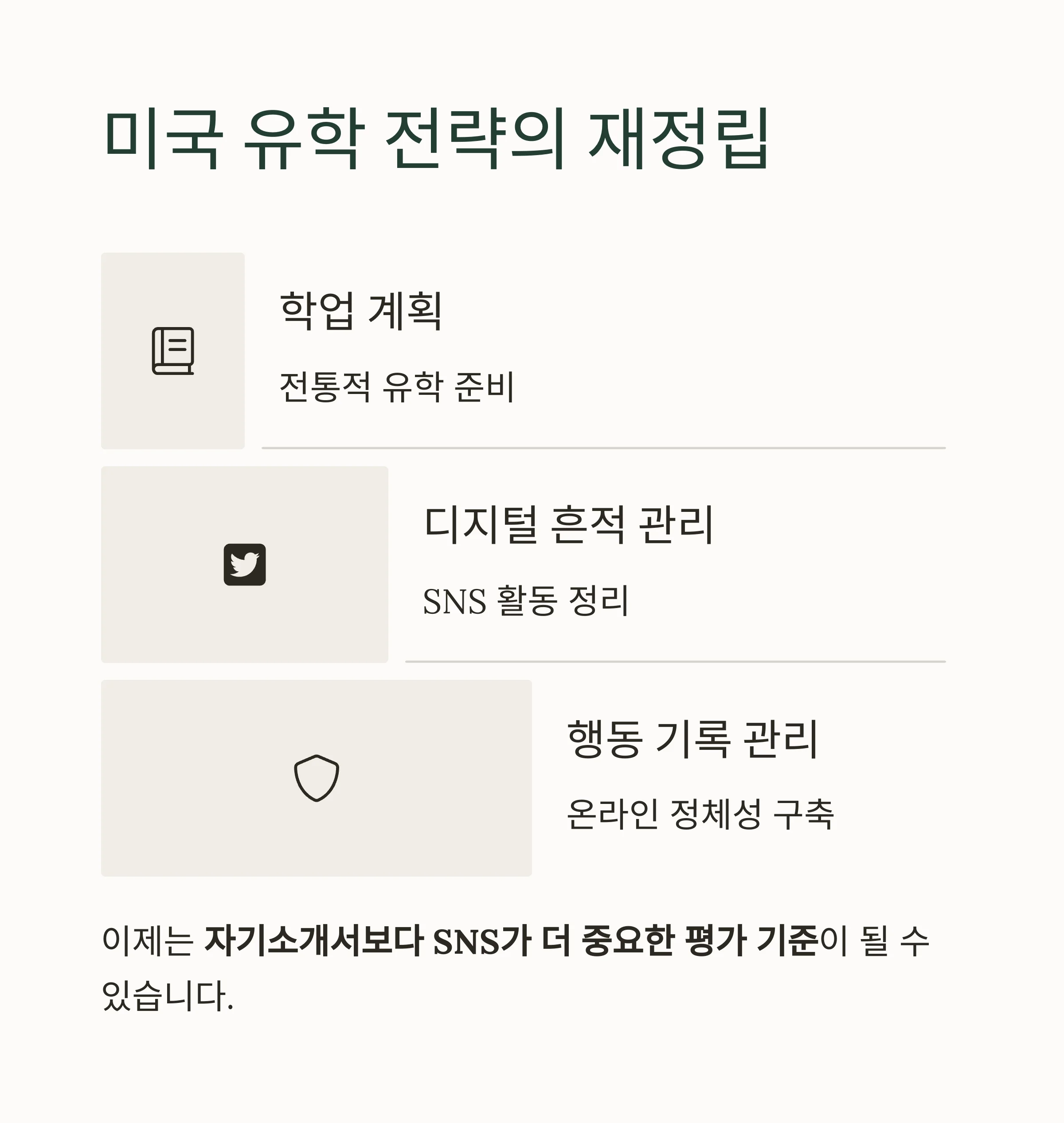 유학 전략은 ‘학력’에서 ‘행동기록’까지 확장되어야 합니다