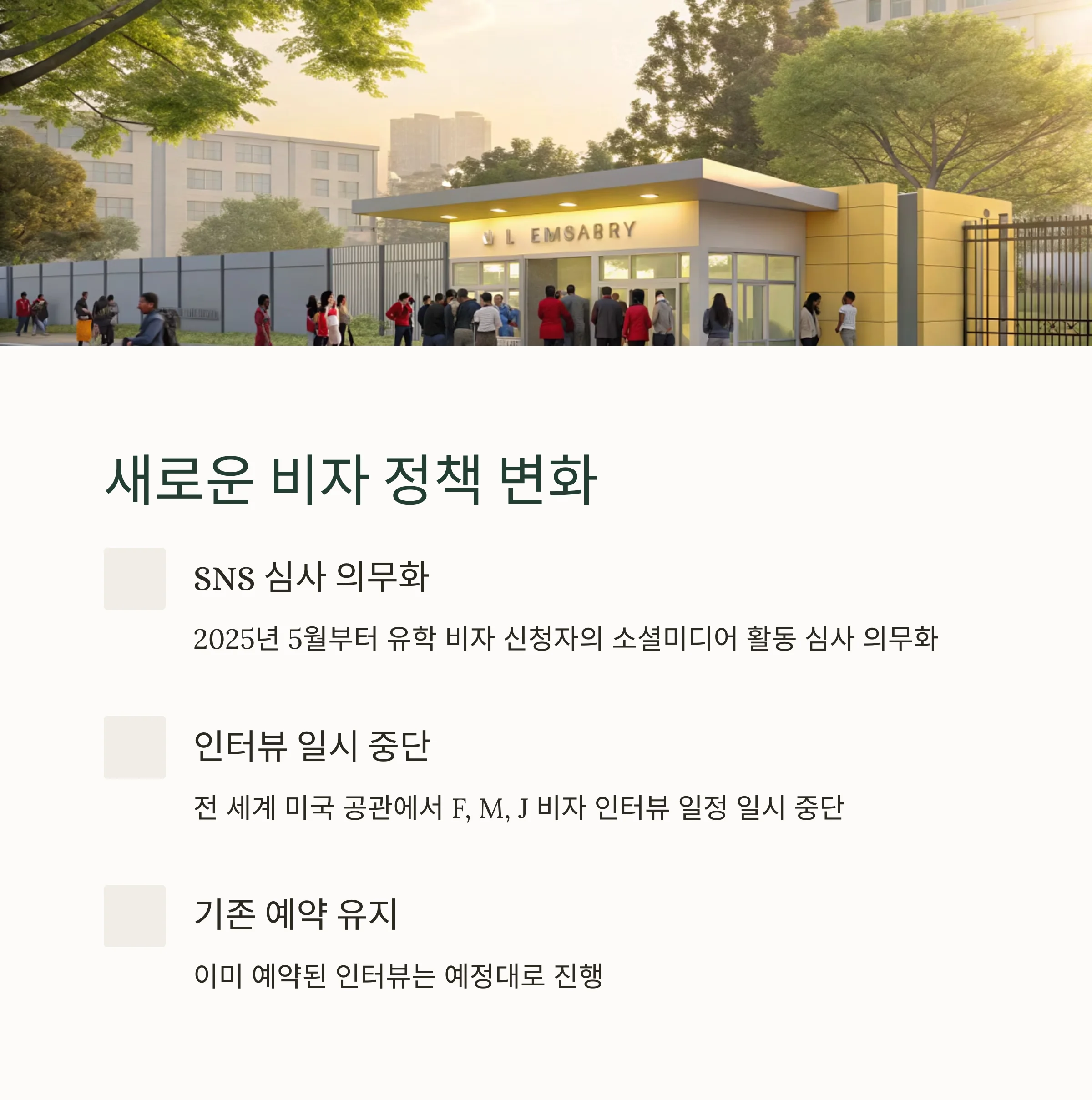 | 미국 유학비자 인터뷰 중단, 주한 미국대사관 상황 정리 (0) | 2025.05.28 |