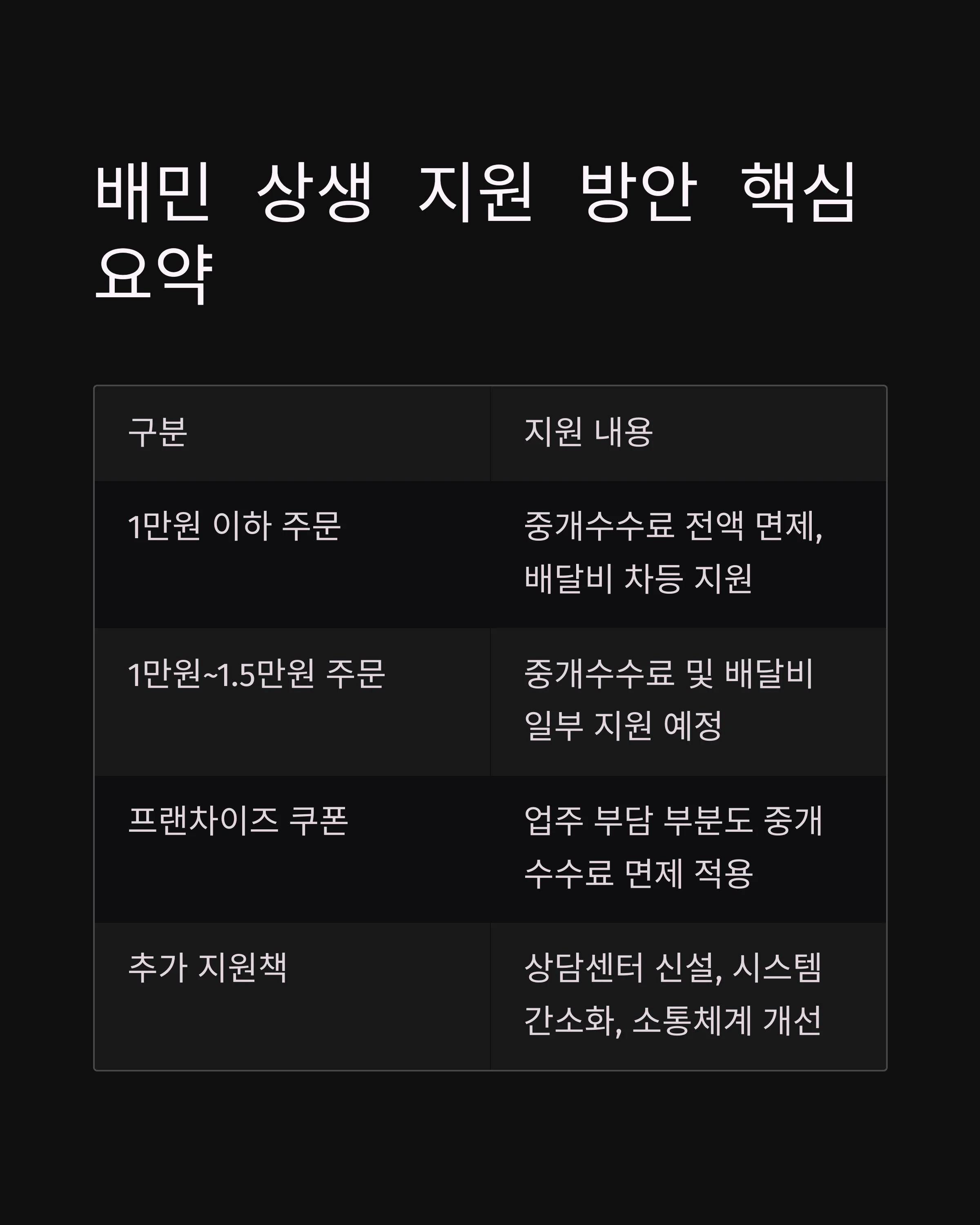 1만원 이하 주문 중개수수료 전액 면제, 배달비 차등 지원