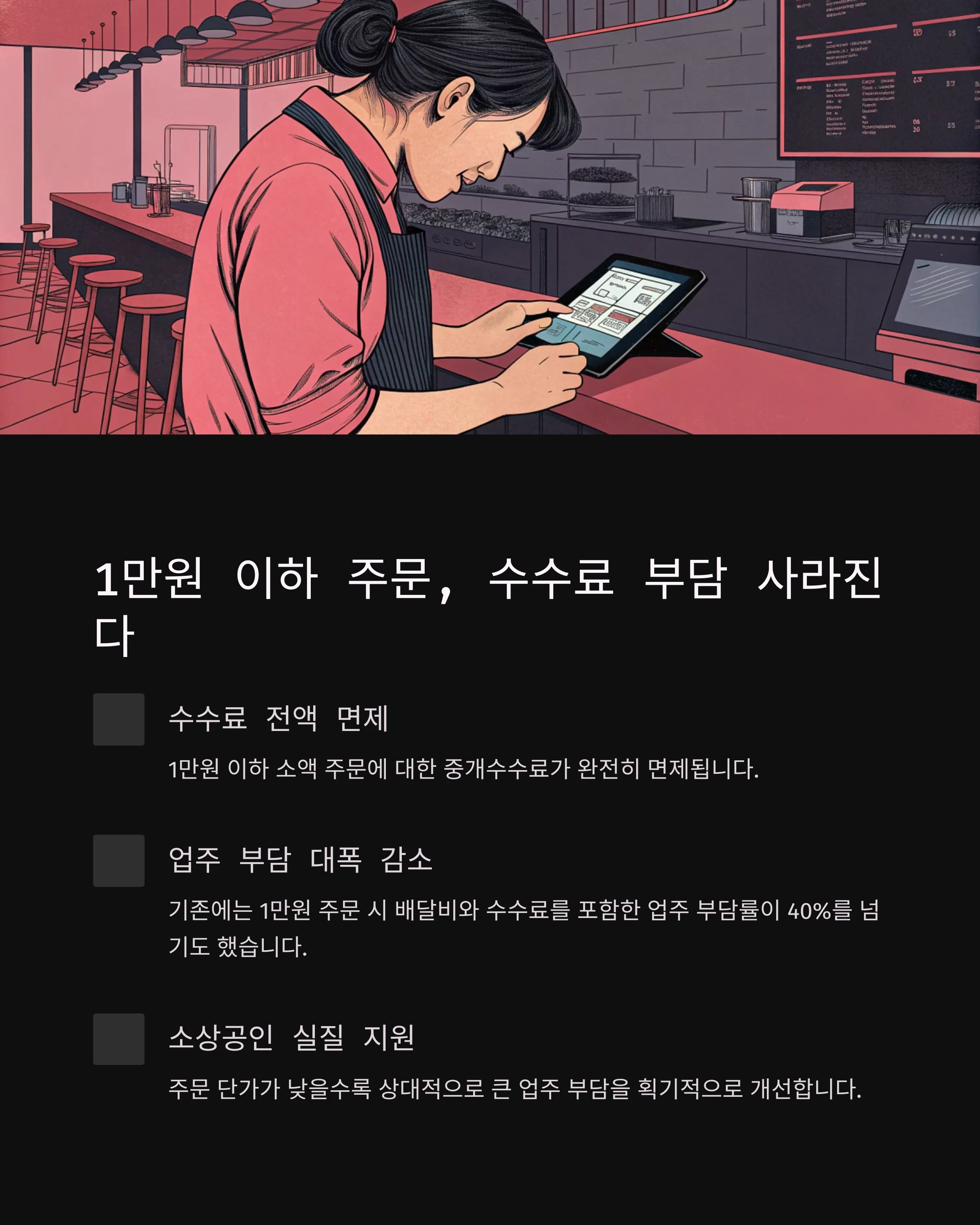 소액 주문 수수료 전액 면제, 업주 부담 대폭 완화되나?