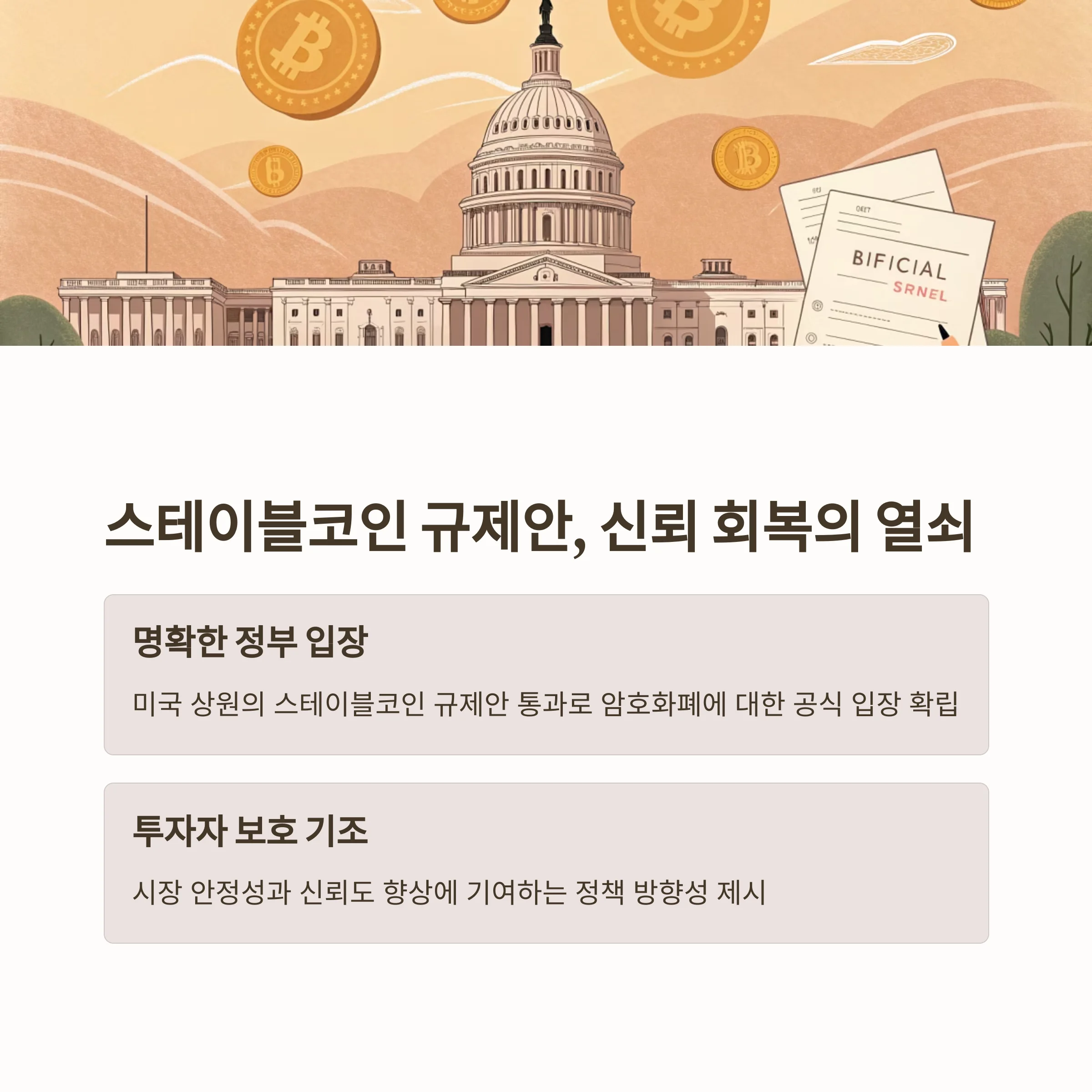 | 스테이블코인 규제안 | 시장 신뢰 기반 확보 |