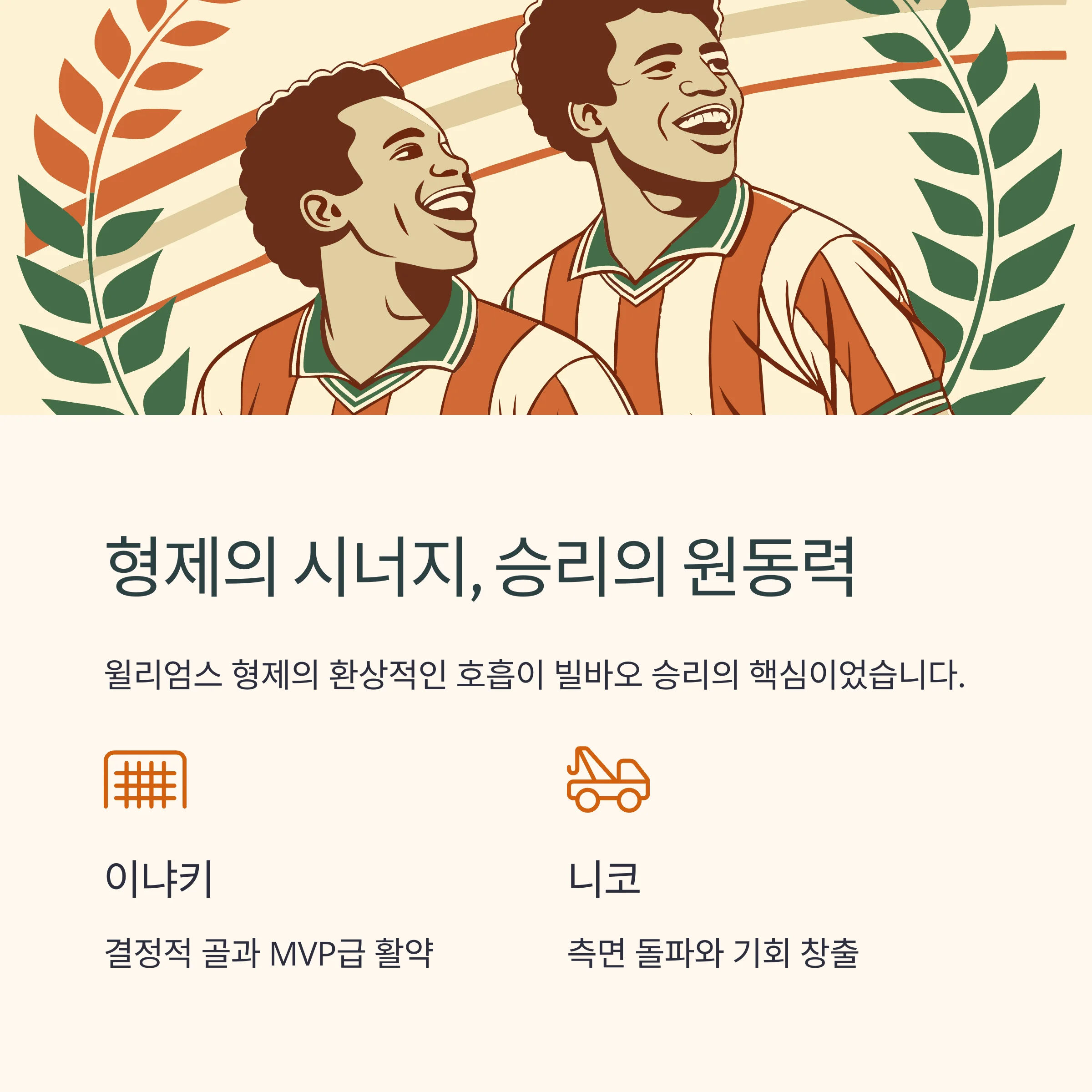 이냐키 윌리엄스는 경기 MVP급 활약을 보여줬습니다. 날카로운 위치 선정과 피니시 능력은 물론, 니코 윌리엄스와의 호흡도 인상적이었습니다. 니코는 왼쪽 측면에서 끊임없이 상대를 흔들며 기회를 창출했고, 형제의 연계는 팀 공격의 핵심 동력이었습니다.