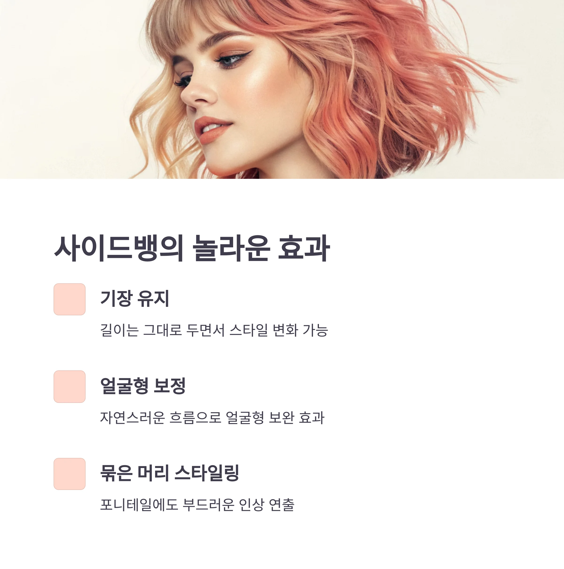 기장은 그대로 유지하면서도 얼굴형 보정과 스타일 완성도를 높일 수 있고,