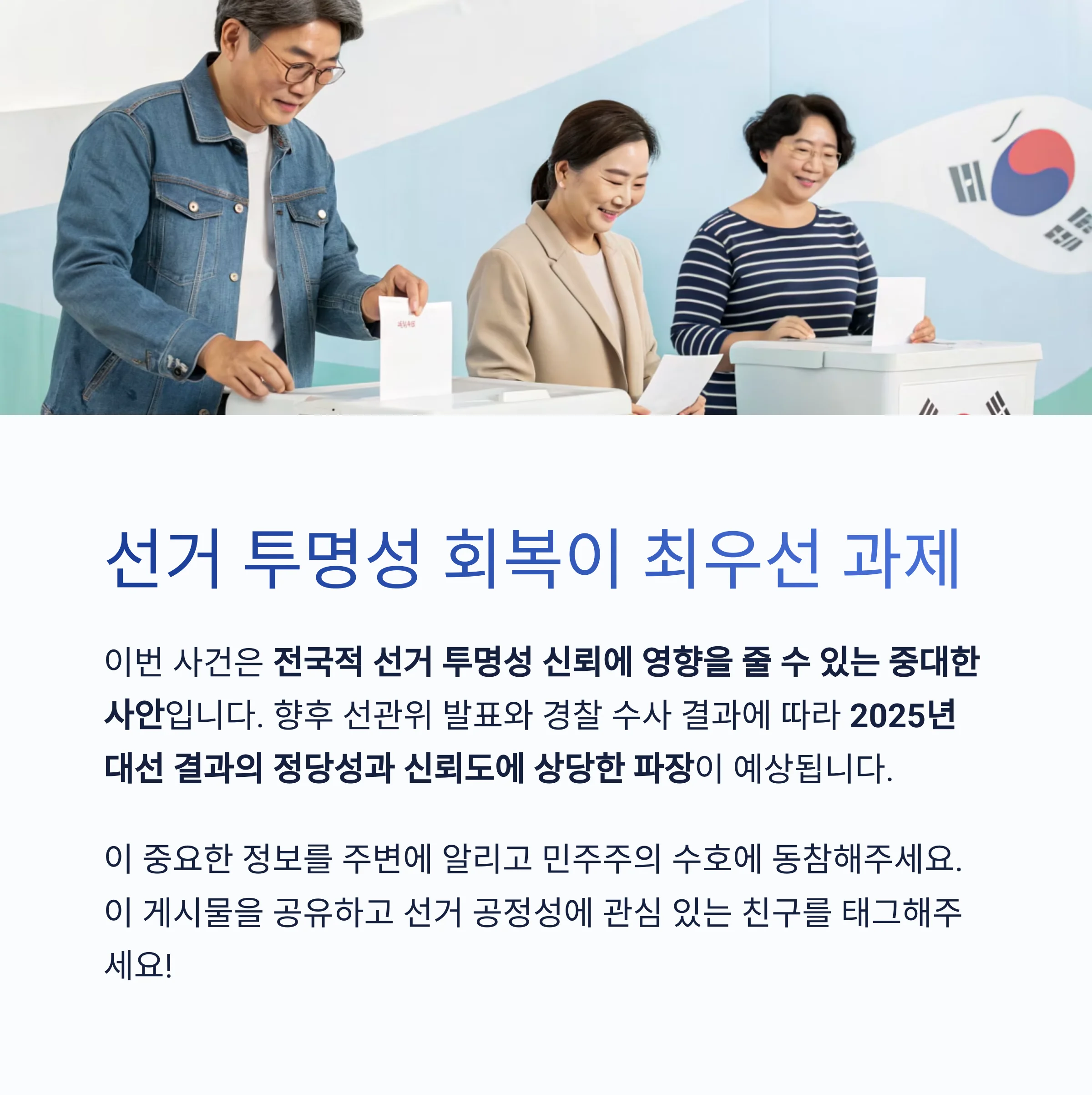 전국적 선거 투명성 신뢰에 영향을 줄 수 있는 중대한 사안입니다.