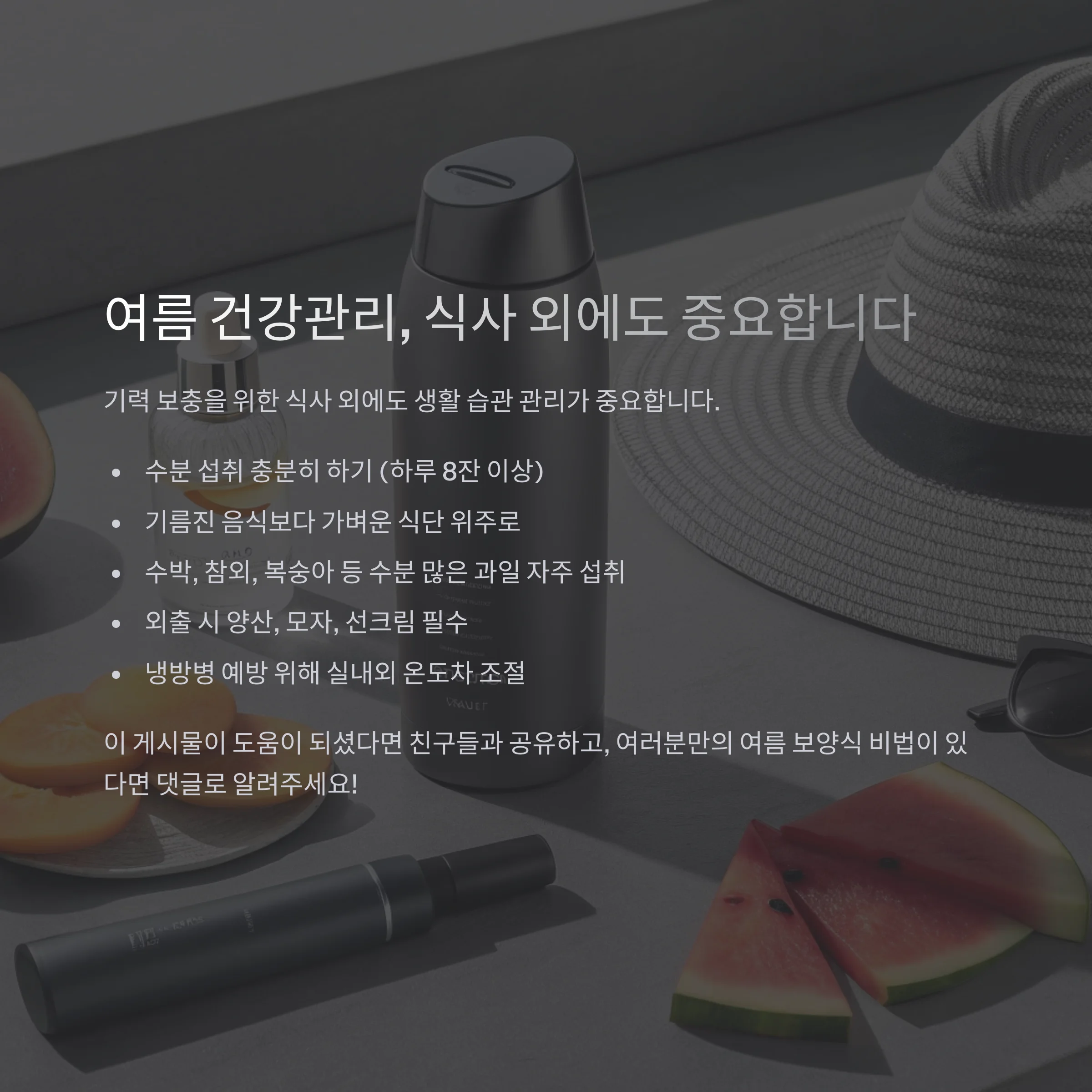 - 수박, 참외, 복숭아 등 수분 많은 과일 자주 섭취