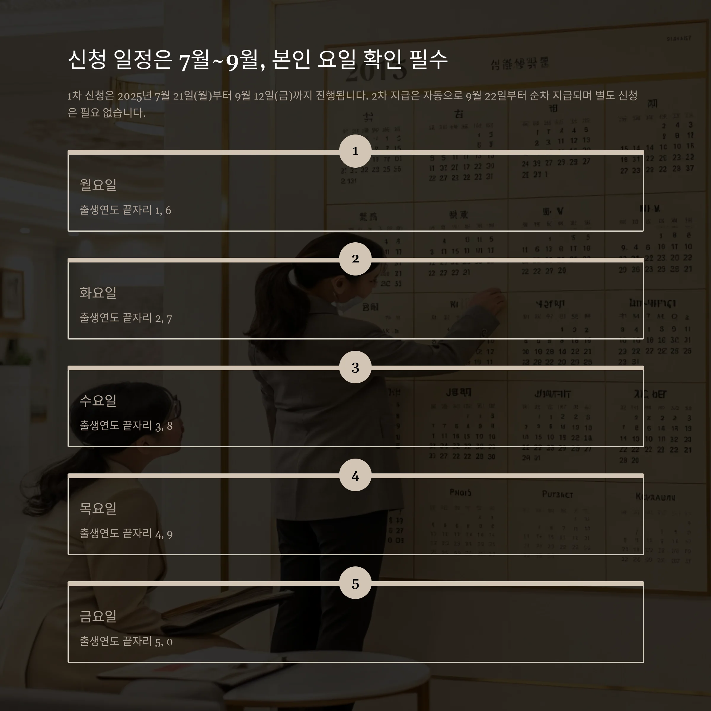 출생연도 끝자리에 따라 요일제가 적용되니 신청 요일 확인이 필요합니다.