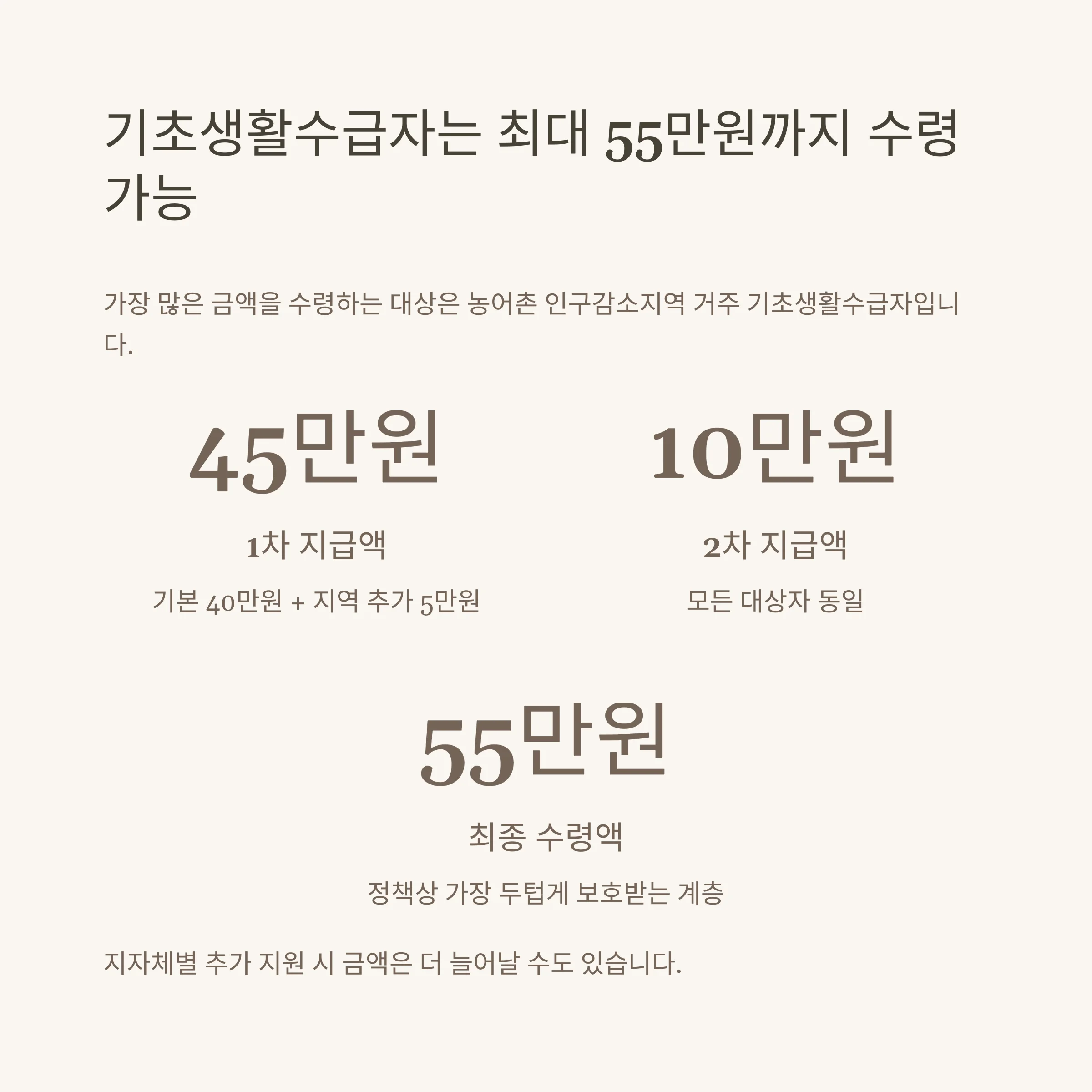 4. 기초생활수급자는 최대 55만원까지 수령 가능