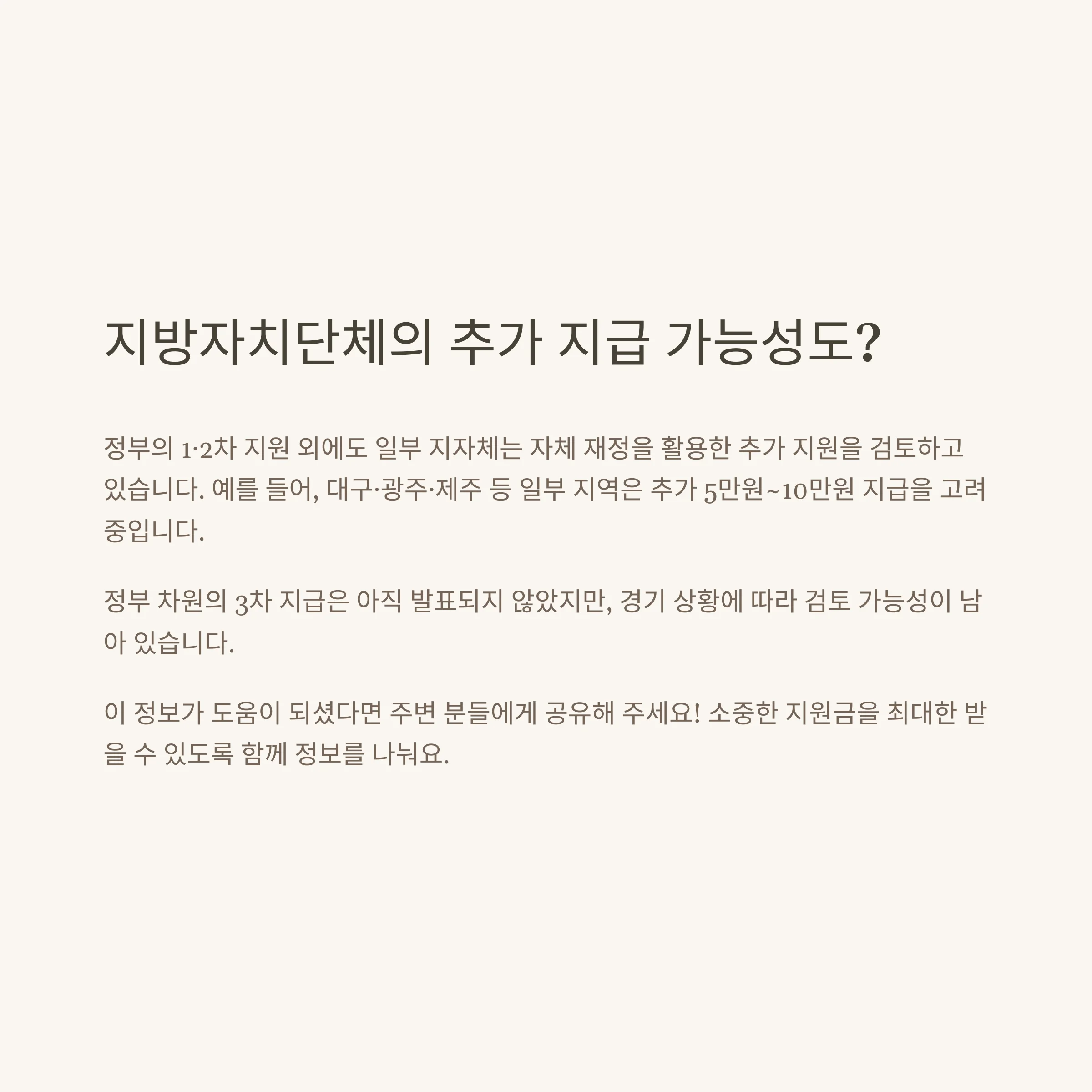 3. 지역에 따라 추가 지원 최대 5만원