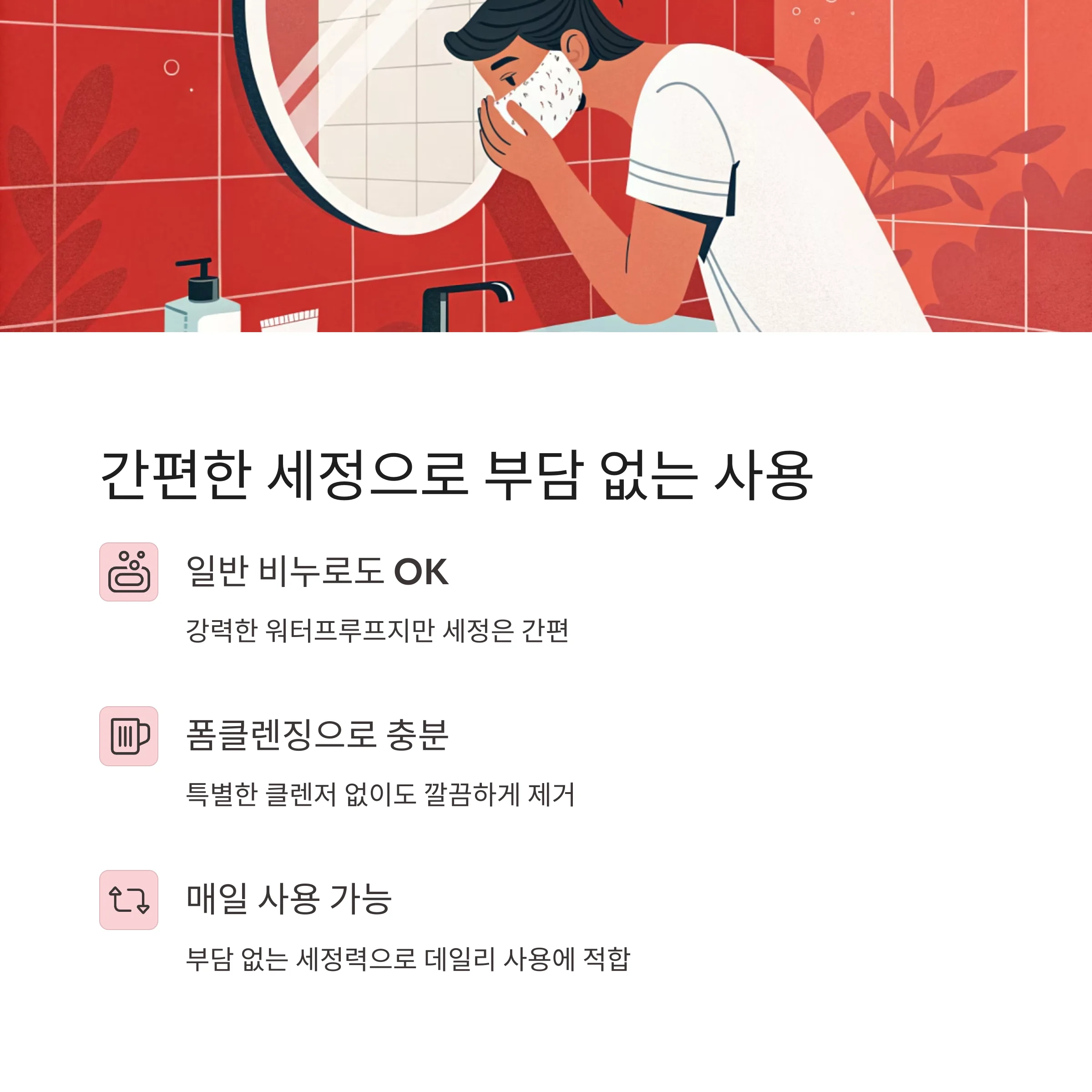 간편한 세정, 일상 클렌저로도 OK
