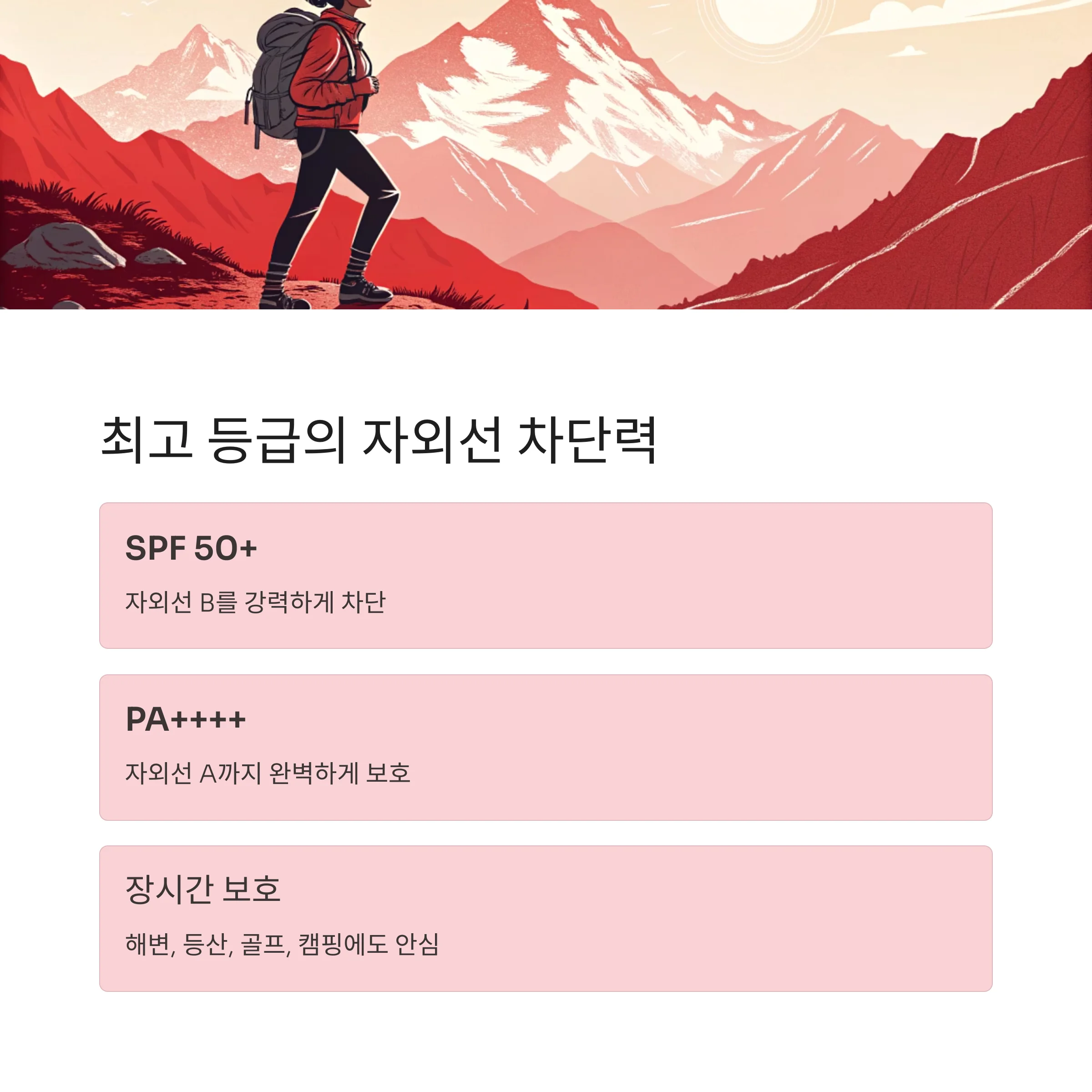 SPF 50+ PA++++, 야외활동에도 강력하게