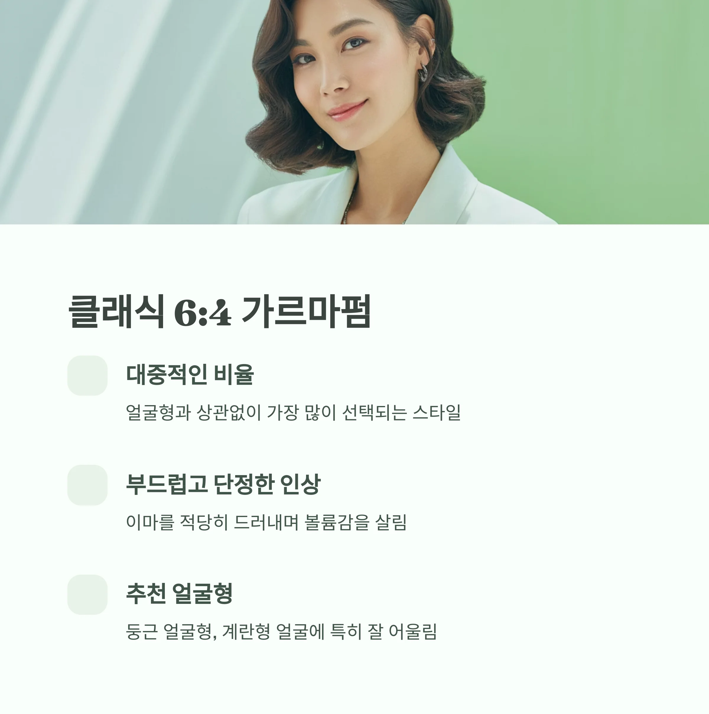 | 6:4 | 부드럽고 단정 | 둥근형, 계란형 |