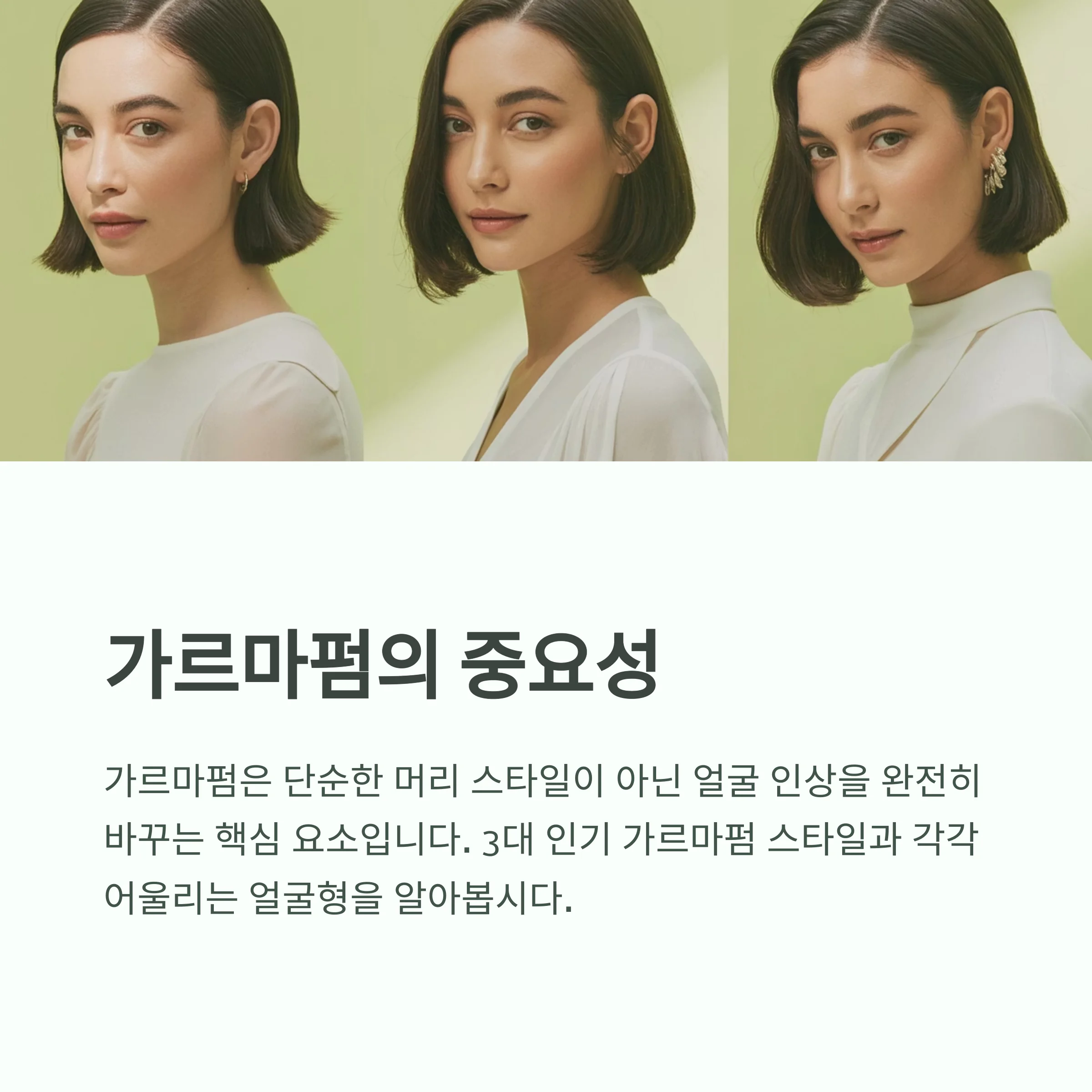 각 스타일이 잘 어울리는 얼굴형과 분위기에 대해 설명드립니다