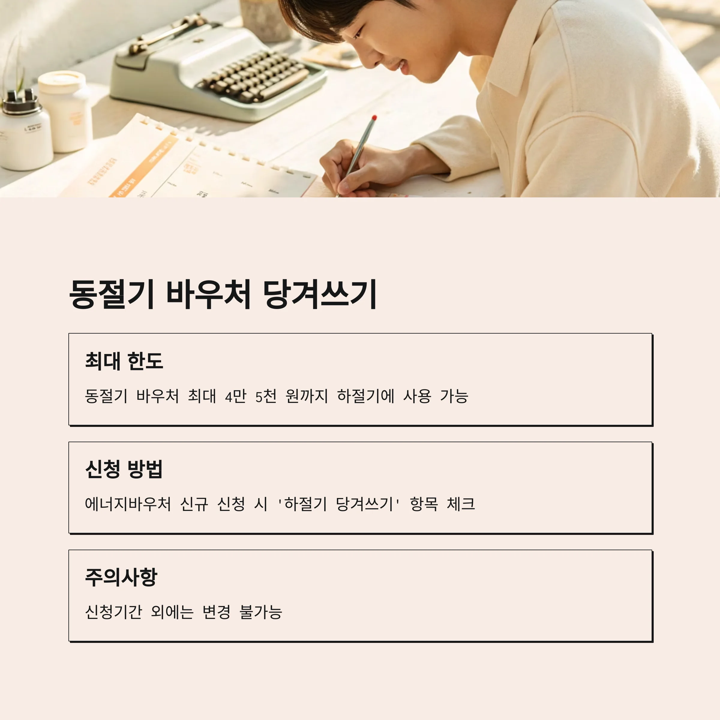 동절기 바우처는 최대 4만 5천 원까지 하절기에 당겨 사용할 수 있습니다.