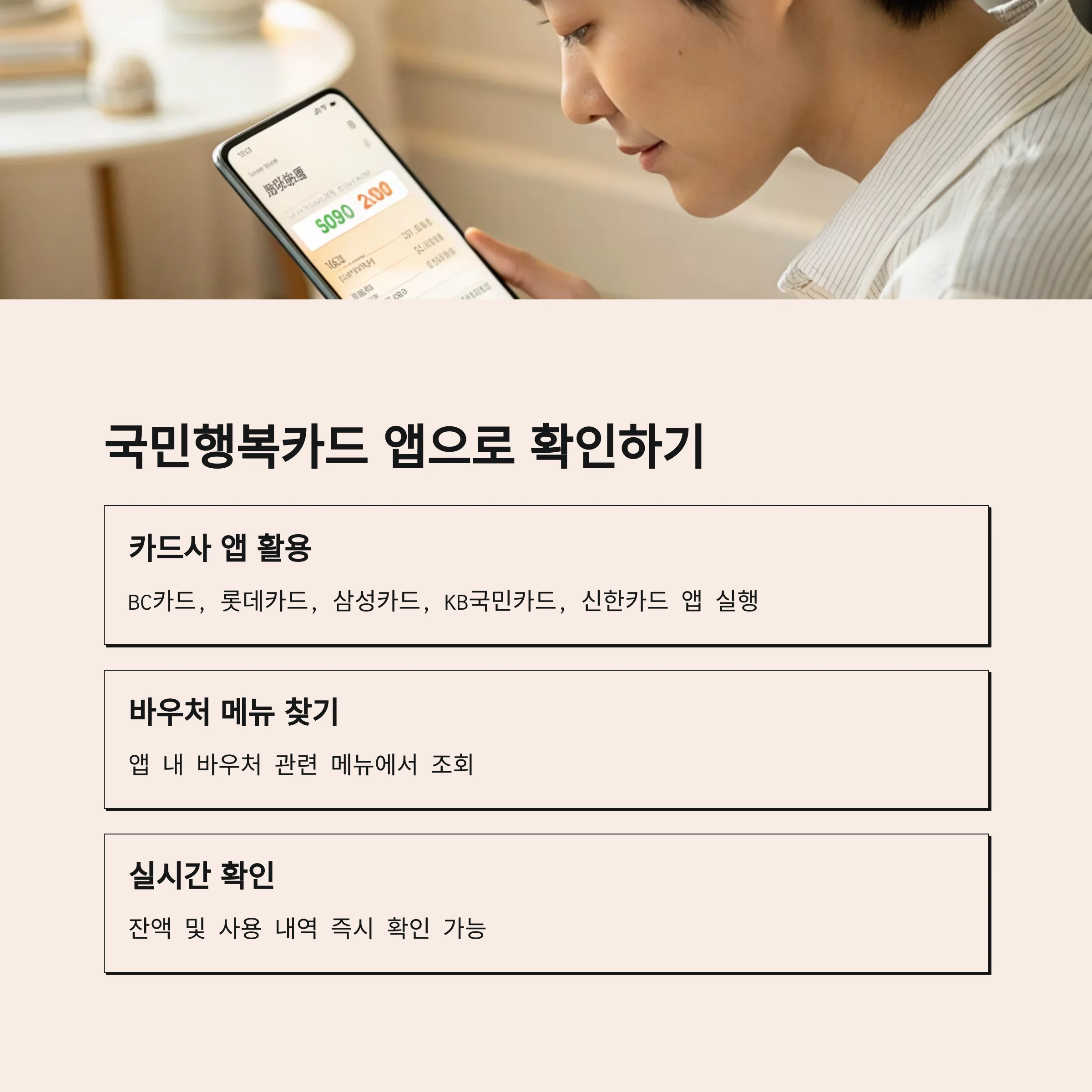 국민행복카드로 지급받는 경우 해당 카드사의 앱을 활용하세요