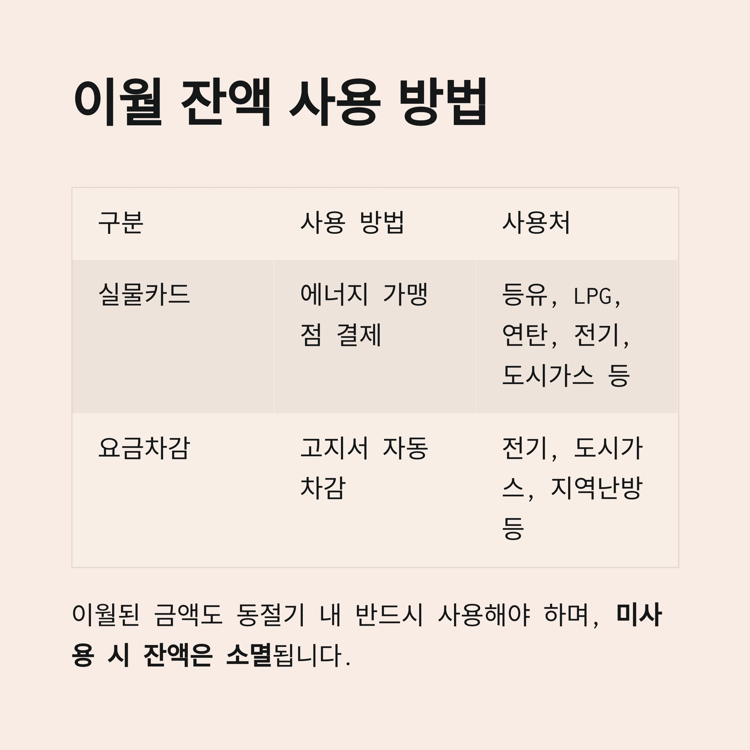 지정된 에너지 사용처에서만 사용 가능합니다