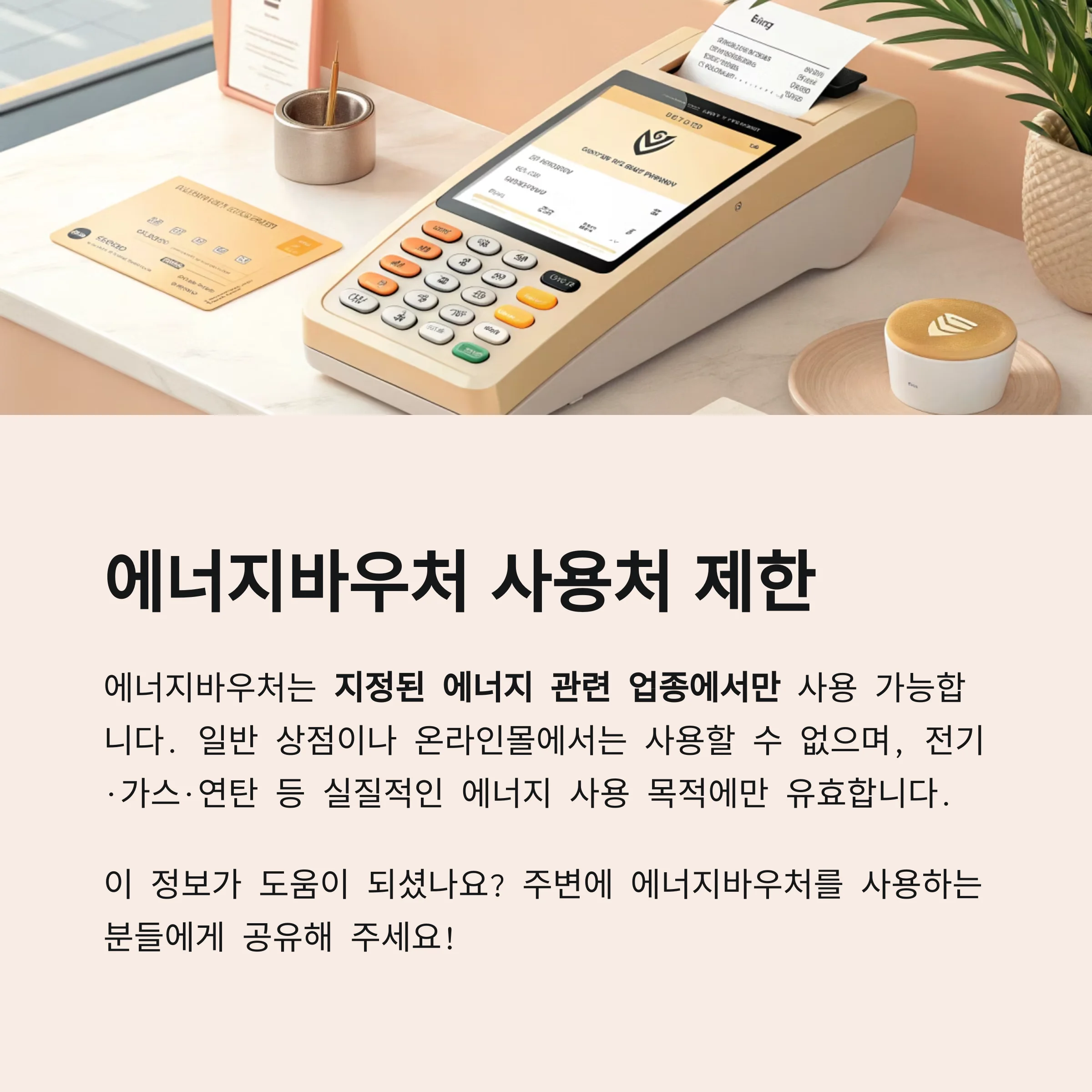 에너지바우처는 일반 상점이나 온라인몰에서는 사용할 수 없습니다.