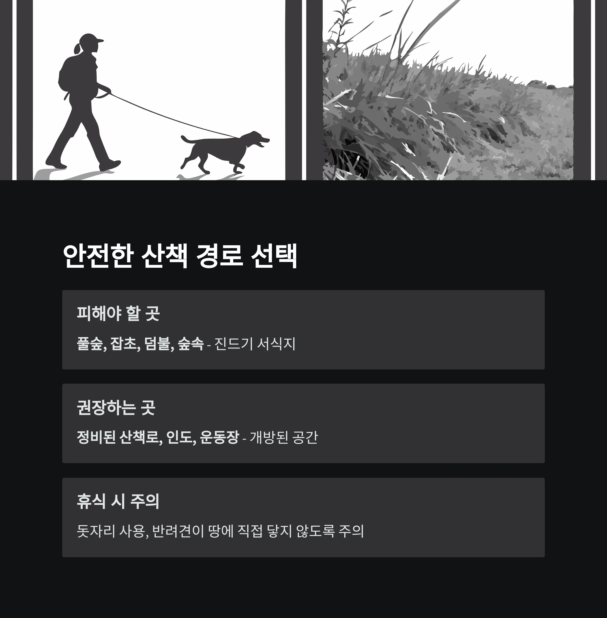 "산책 전 대비 → 위험 회피 → 산책 후 점검"