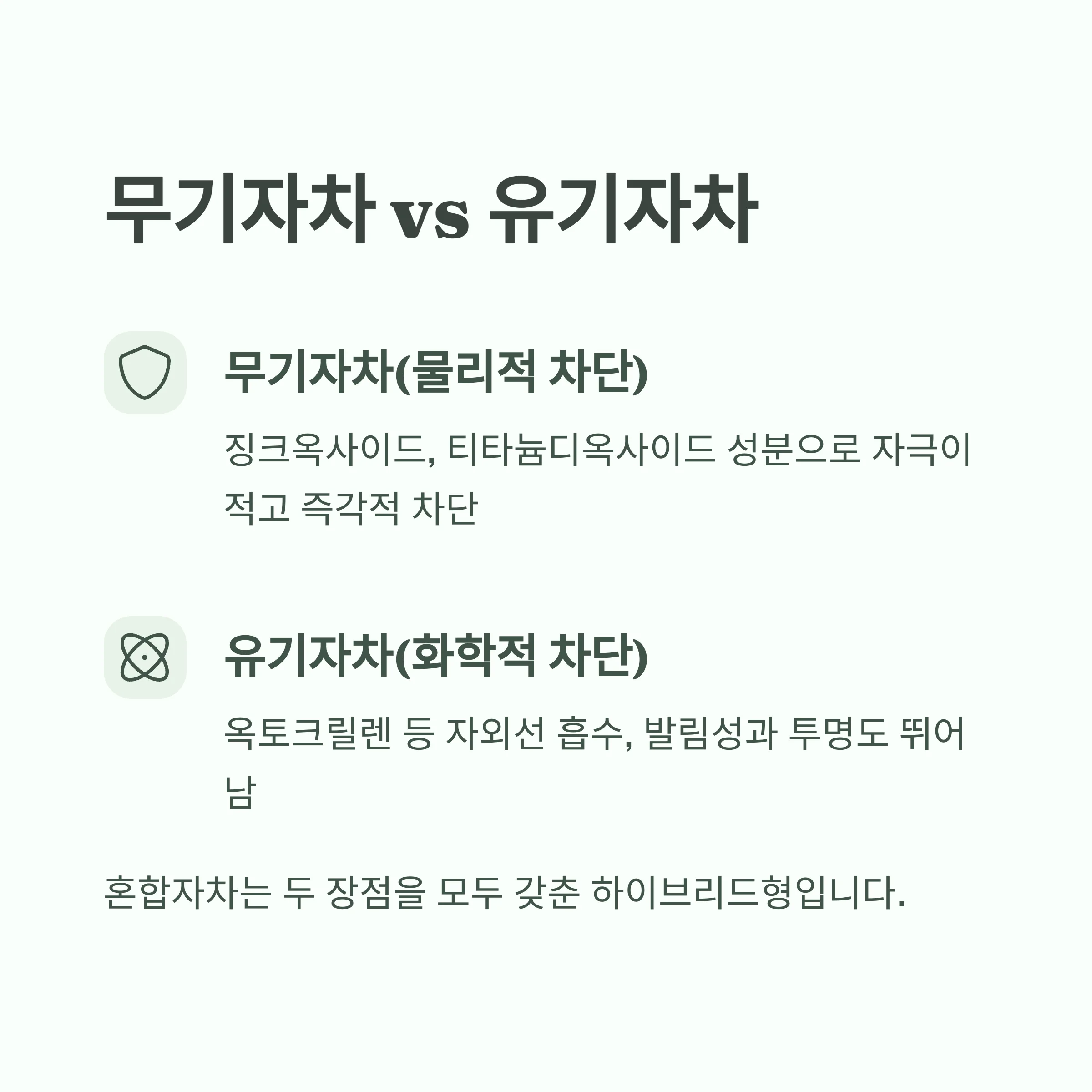 무기자차 vs 유기자차, 차이점은 무엇일까?
