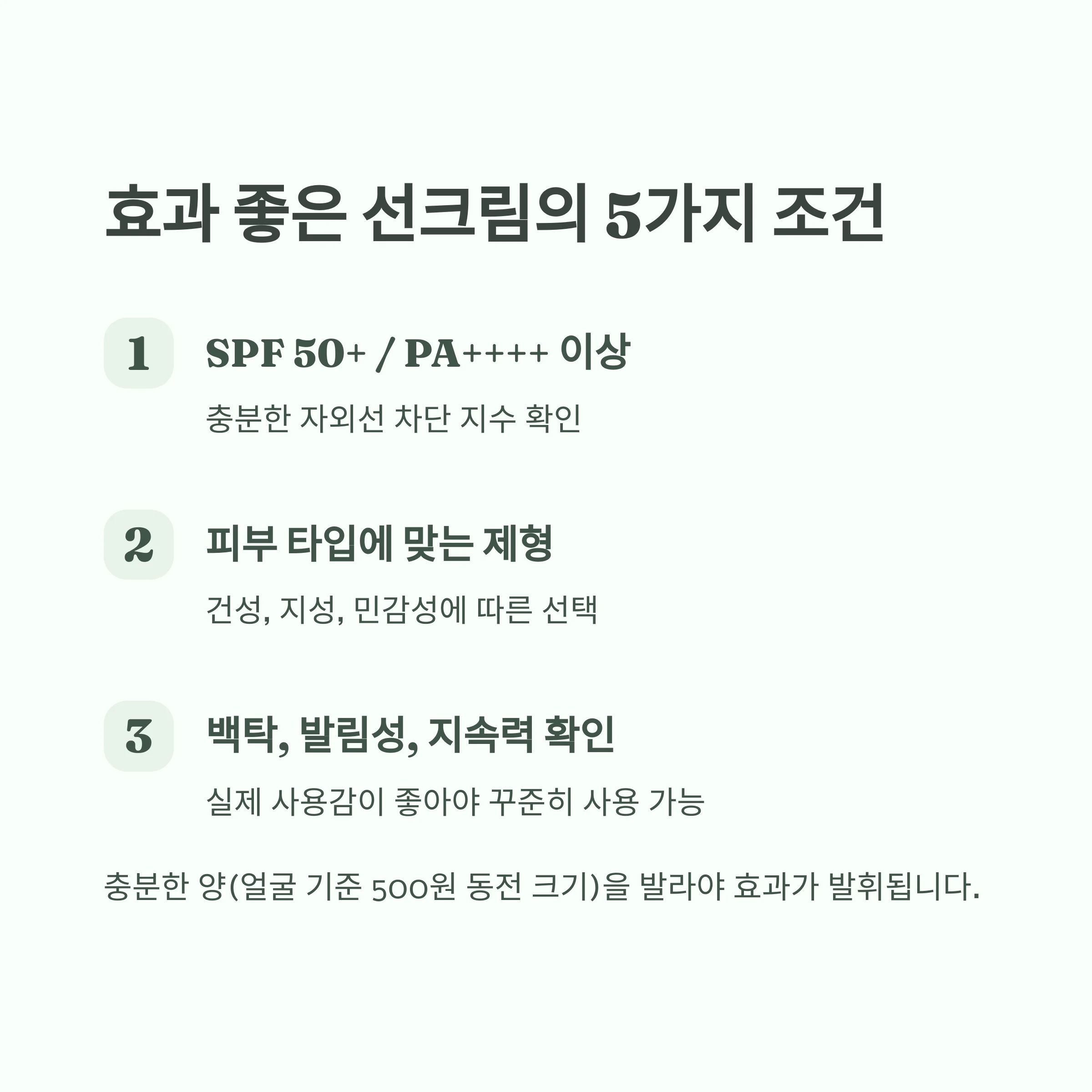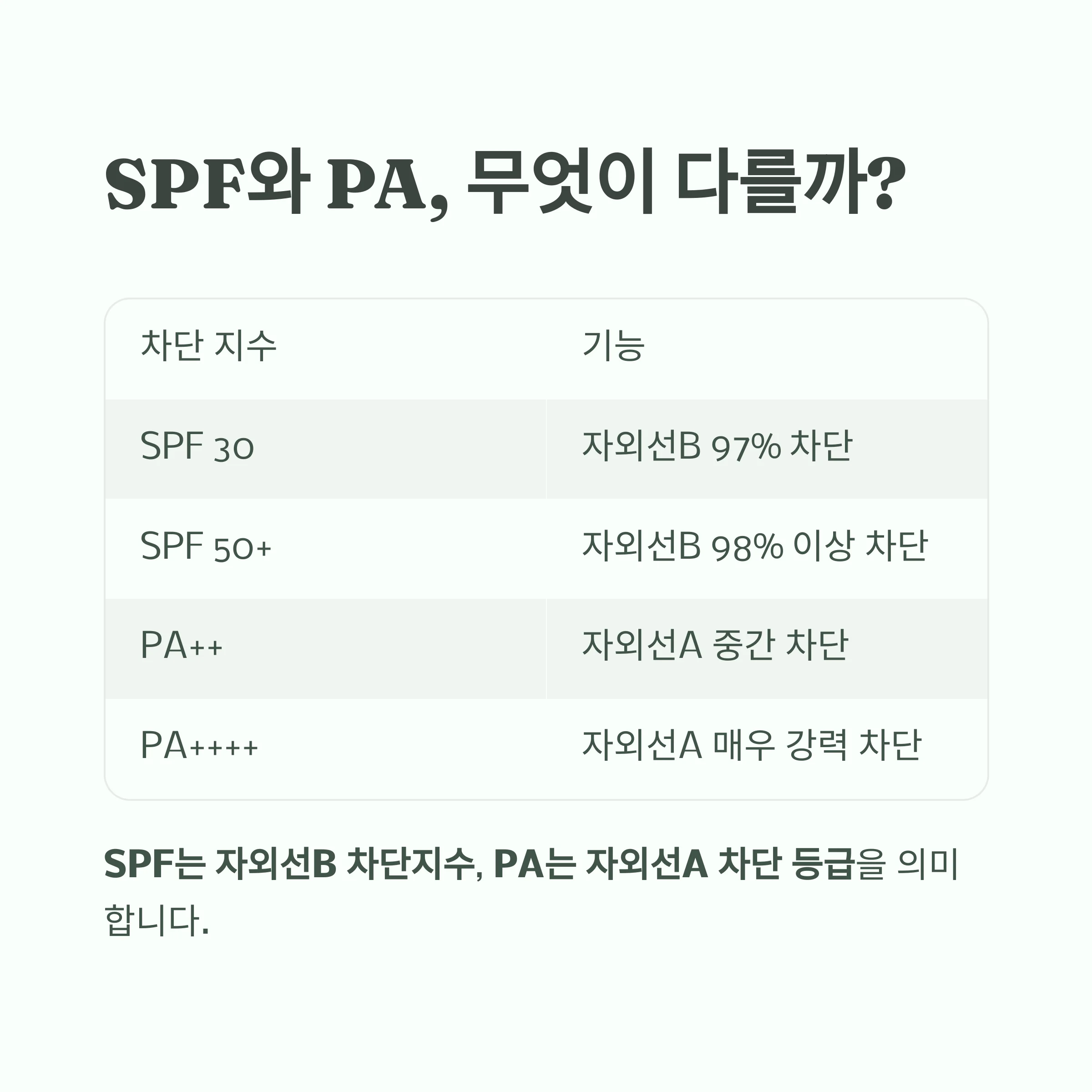 핵심: SPF와 PA 수치가 높다고 해서 무조건 좋은 건 아니며, 피부 타입에 맞는 선택이 가장 중요합니다.