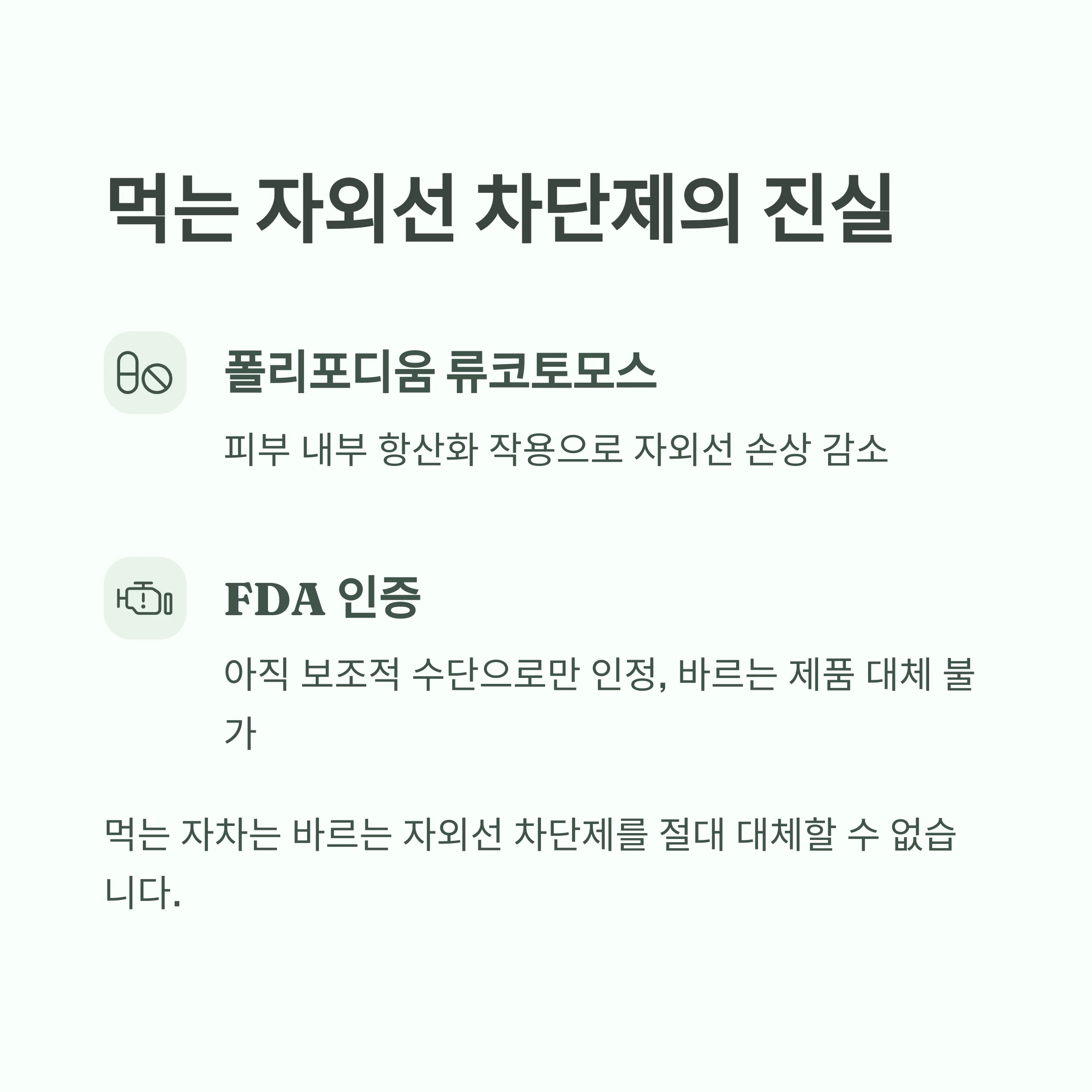 핵심: "먹는 자차는 바르는 자외선 차단제를 절대 대체할 수 없습니다."