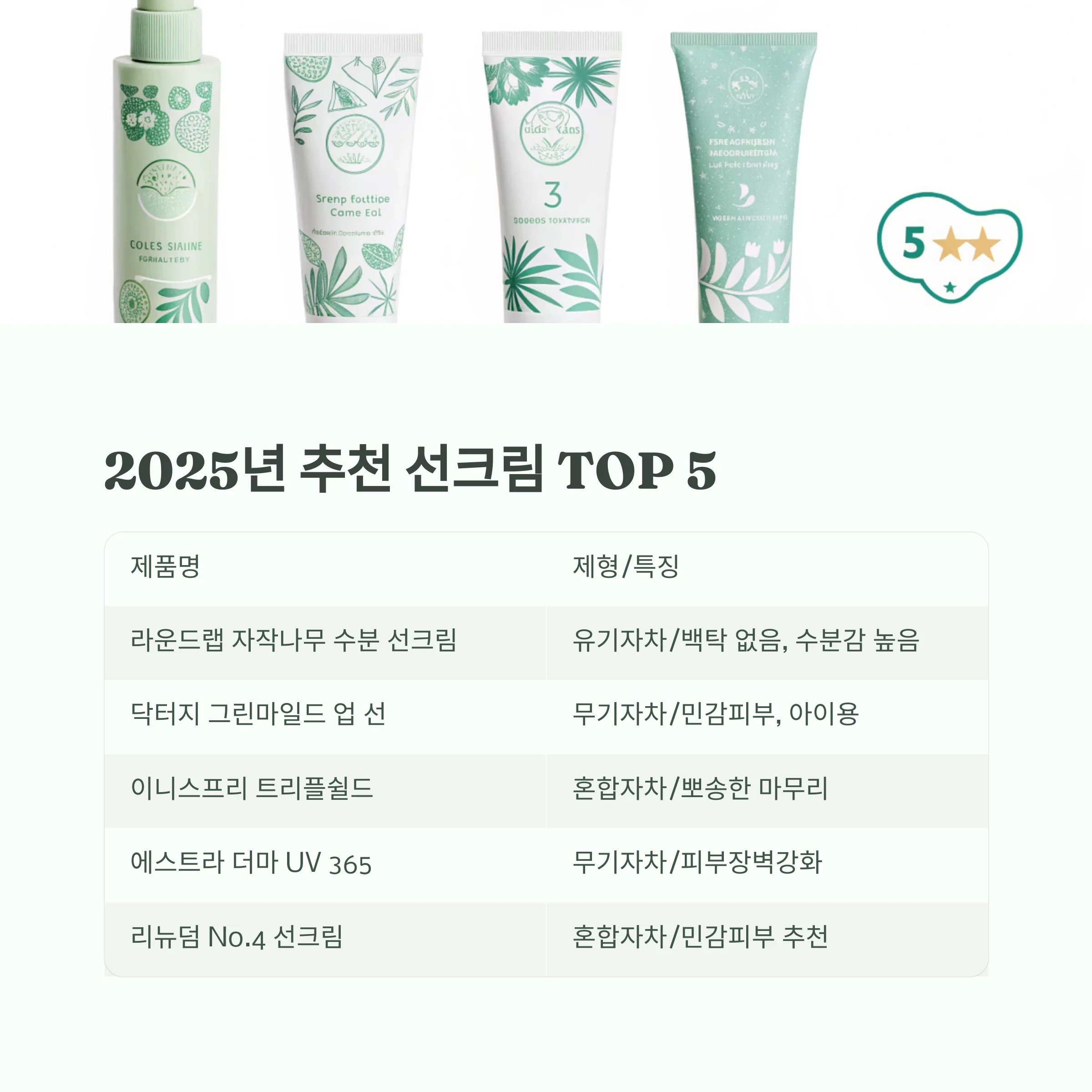 2025년 추천! 실제 효과 검증된 자외선 차단제 5선